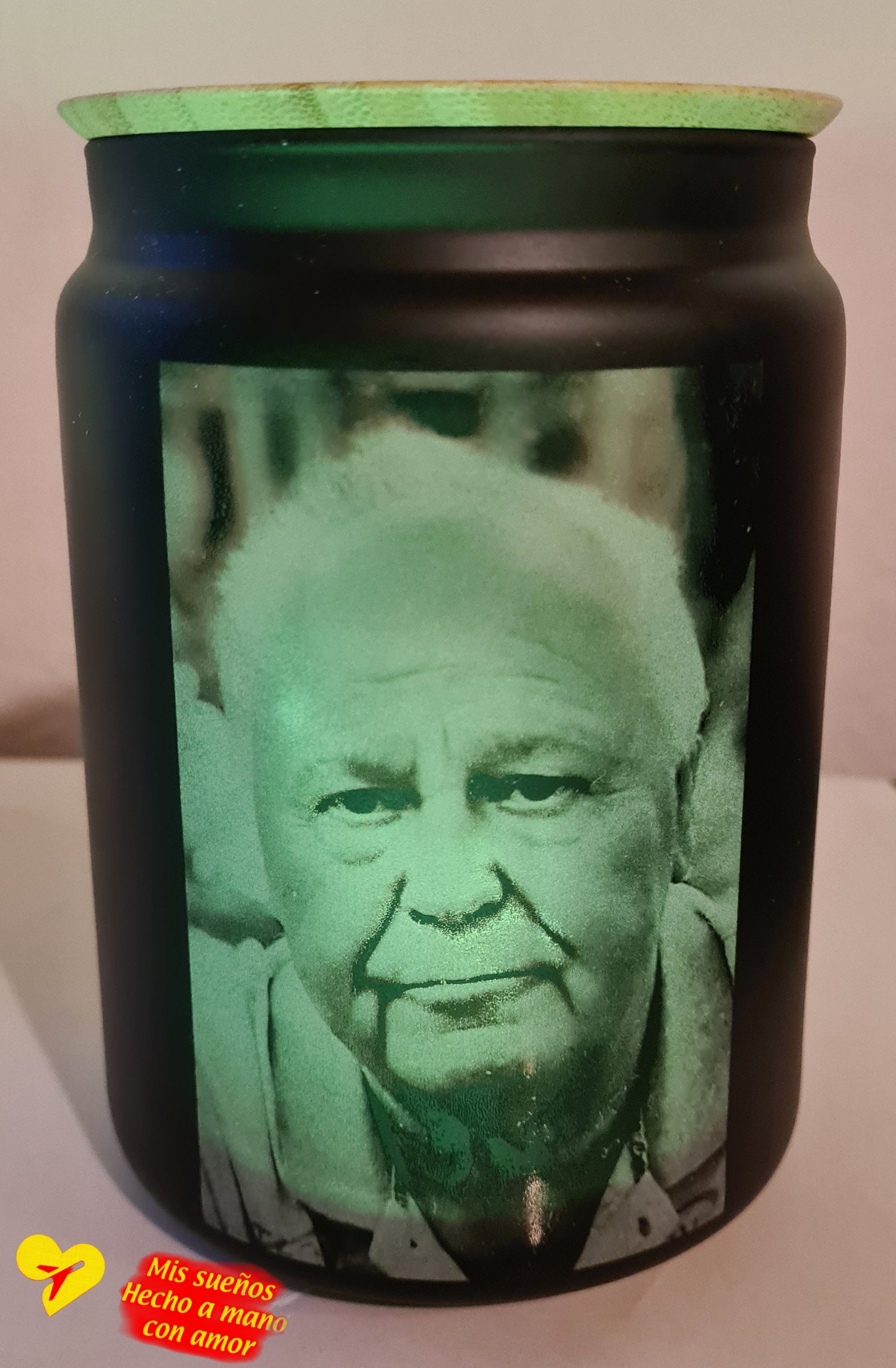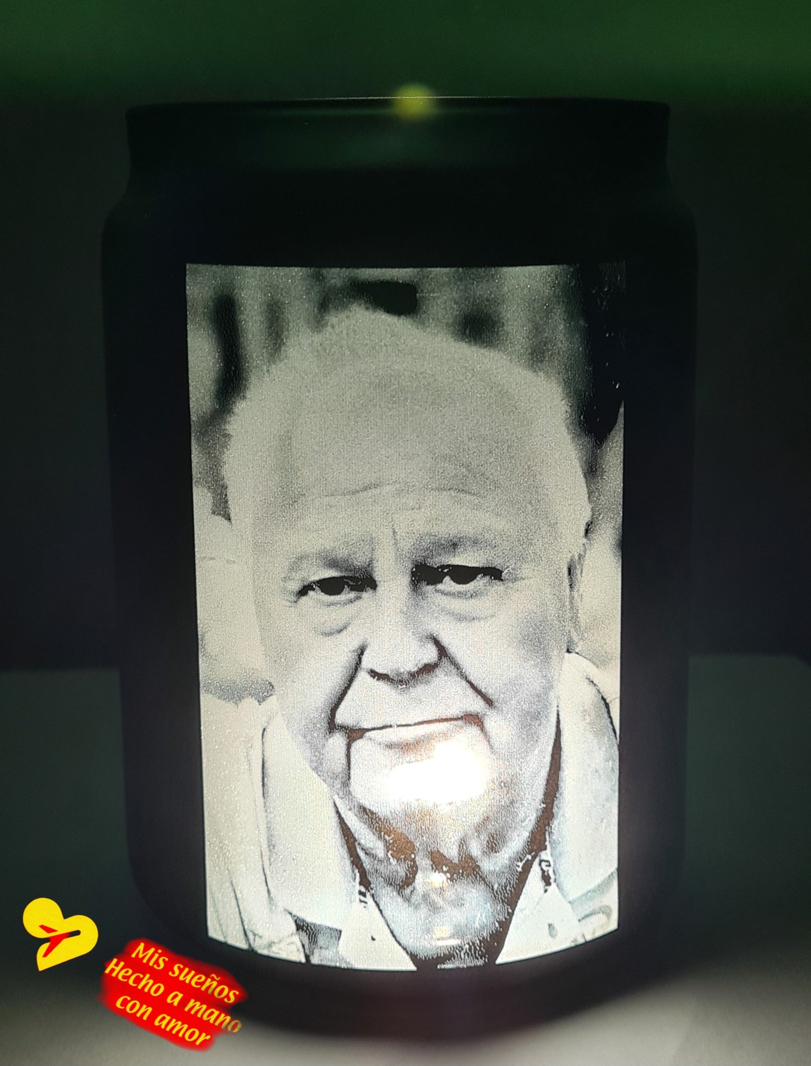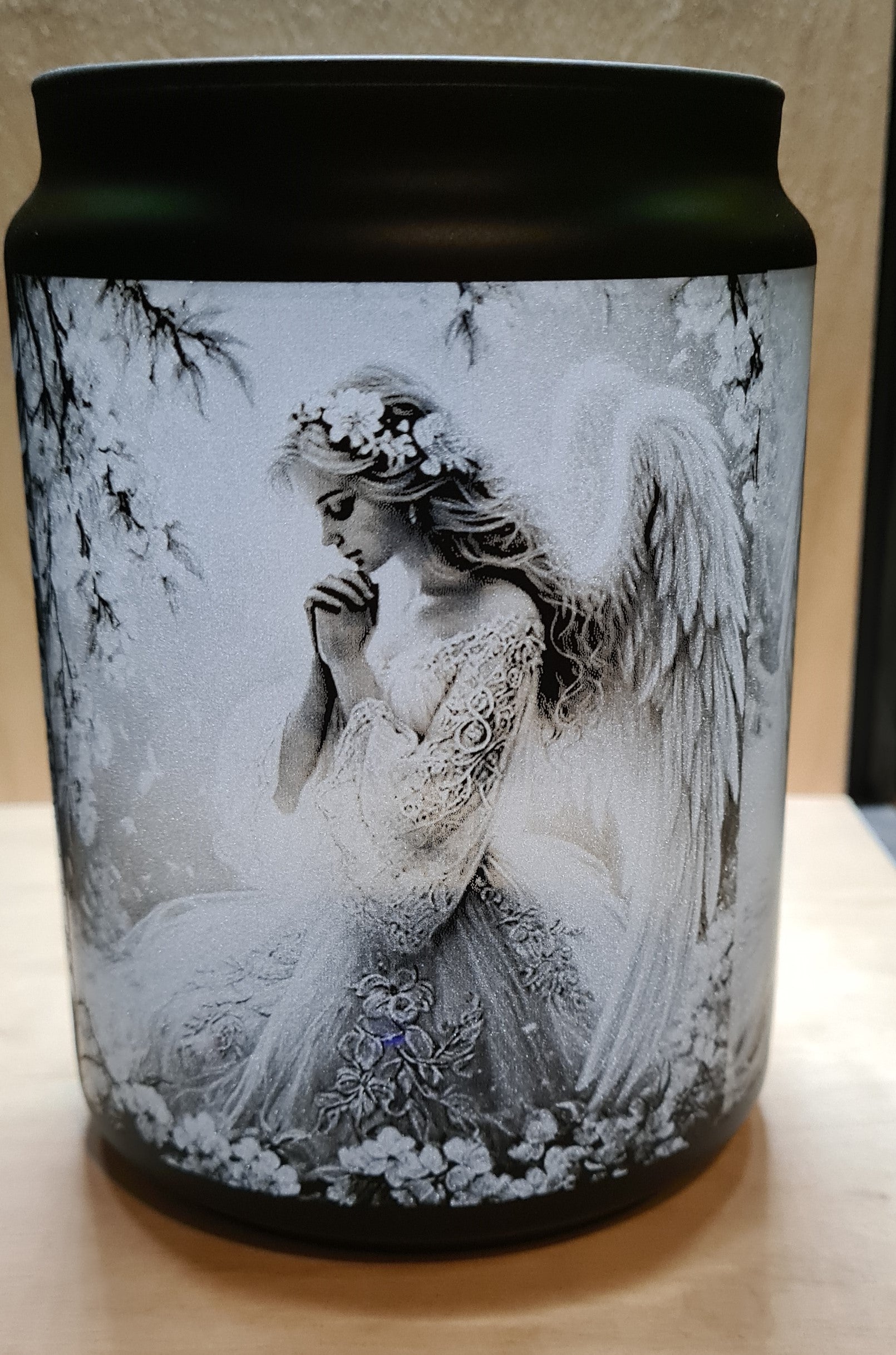 Ein wunderschönes Windlicht aus Glas, mit einem personalisierten Bild als Gravur versehen. Es hat ein Fassungsvermögen von 1100ml. Ideal, um das Glas mit einer Kerze oder einer Lichterkette zu bestücken. Für eine idyllische und romantische Dekoration.