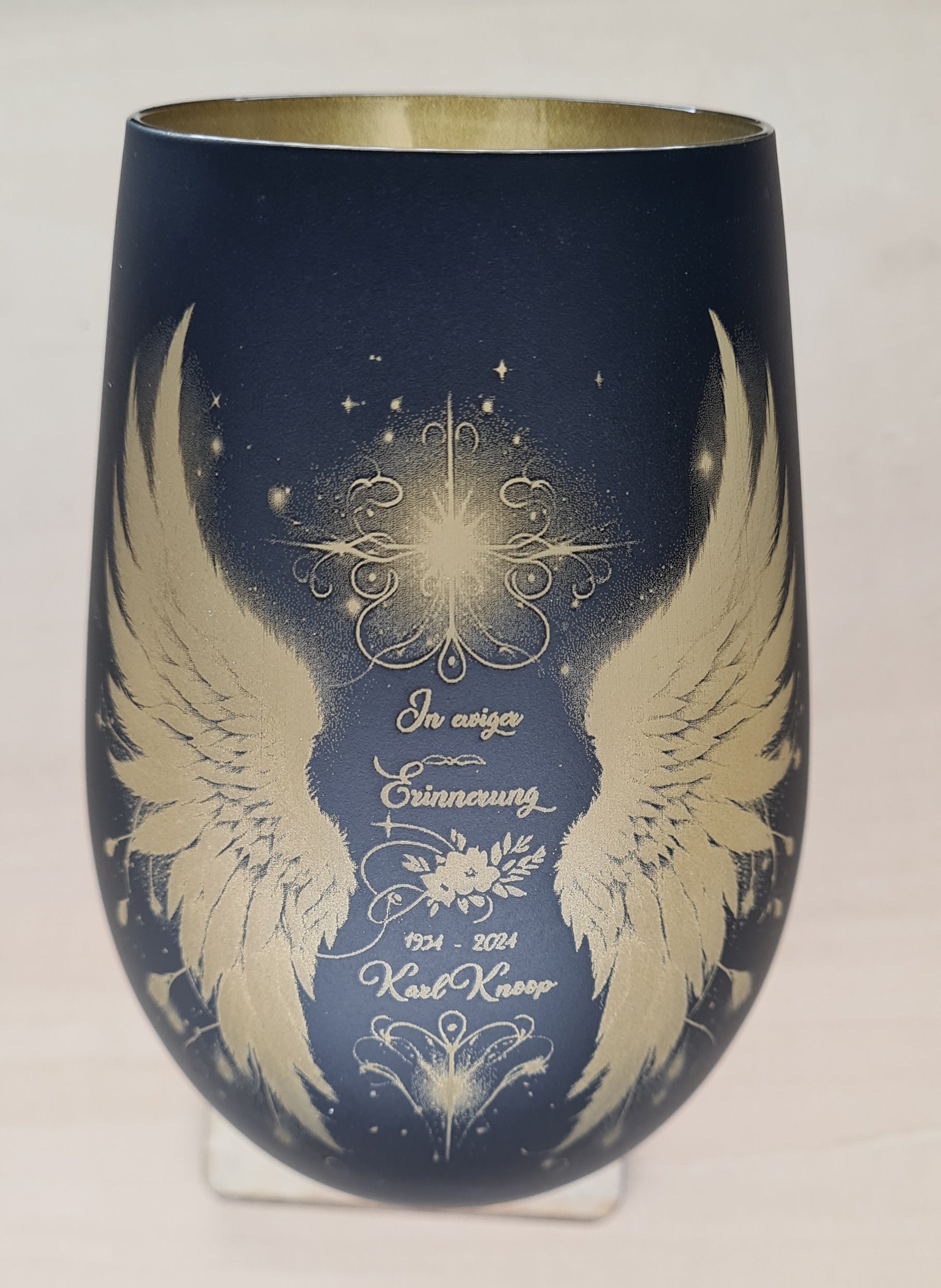 Ein wunderschönes Stölzle-Glas, mit einem individuellen Spruch als Gravur versehen. Es hat ein Fassungsvermögen von 465ml. Ideal, um das Glas mit einem Teelicht oder einer Lichterkette zu bestücken. Für eine idyllische und romantische Dekoration.