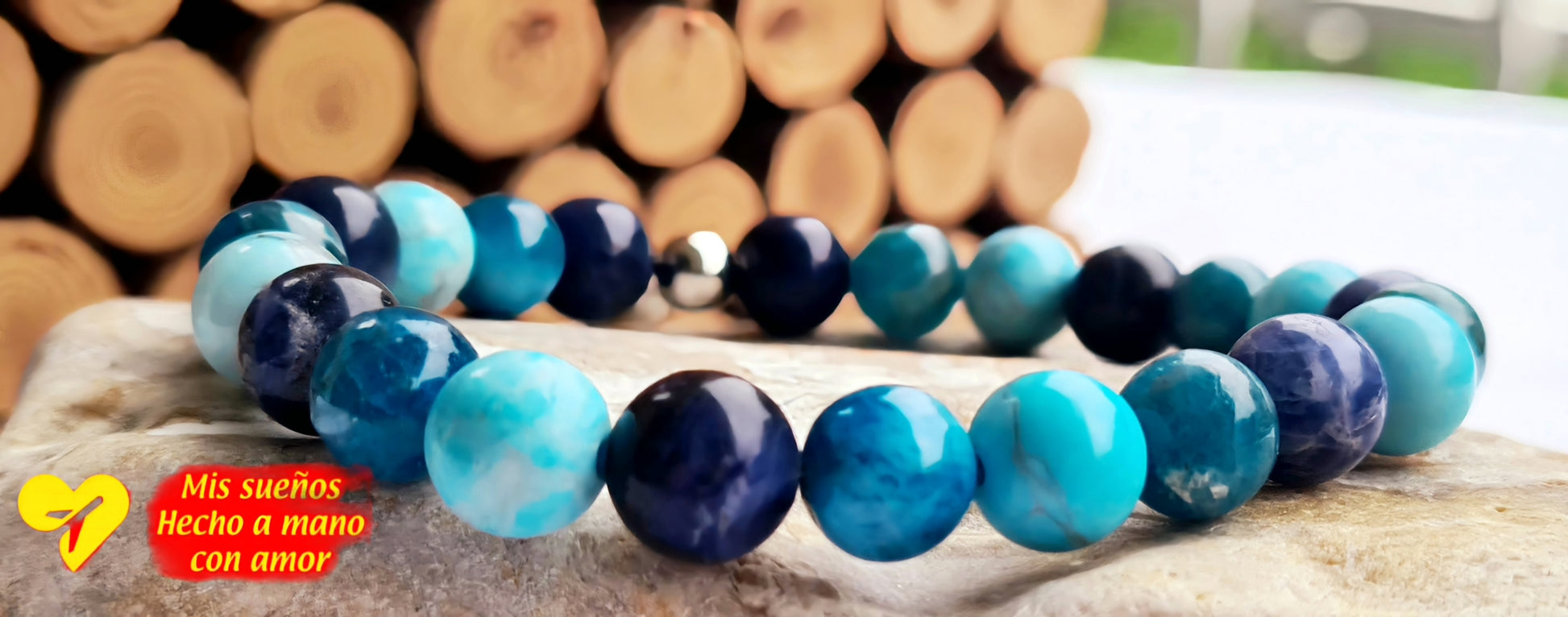 Das Armband ist mit wunderschönen Naturstein-Perlen (8mm) aus Apatit, Magnesit gefärbt und Sodalith besetzt. Die Maße sind hier ca. 19cm, der Preis kann je nach Größenanfrage variieren. Hier wurden die Perlen auf Gummiband aufgefädelt, können aber auch auf Draht oder auch auf hochqualitative Perlseide aufgefädelt und mit einem hochwertiger Karabiner-Verschluss 925 Silber (auch in Gold und Roségold möglich) versehen werden. Gerne mich per Mail kontaktieren.