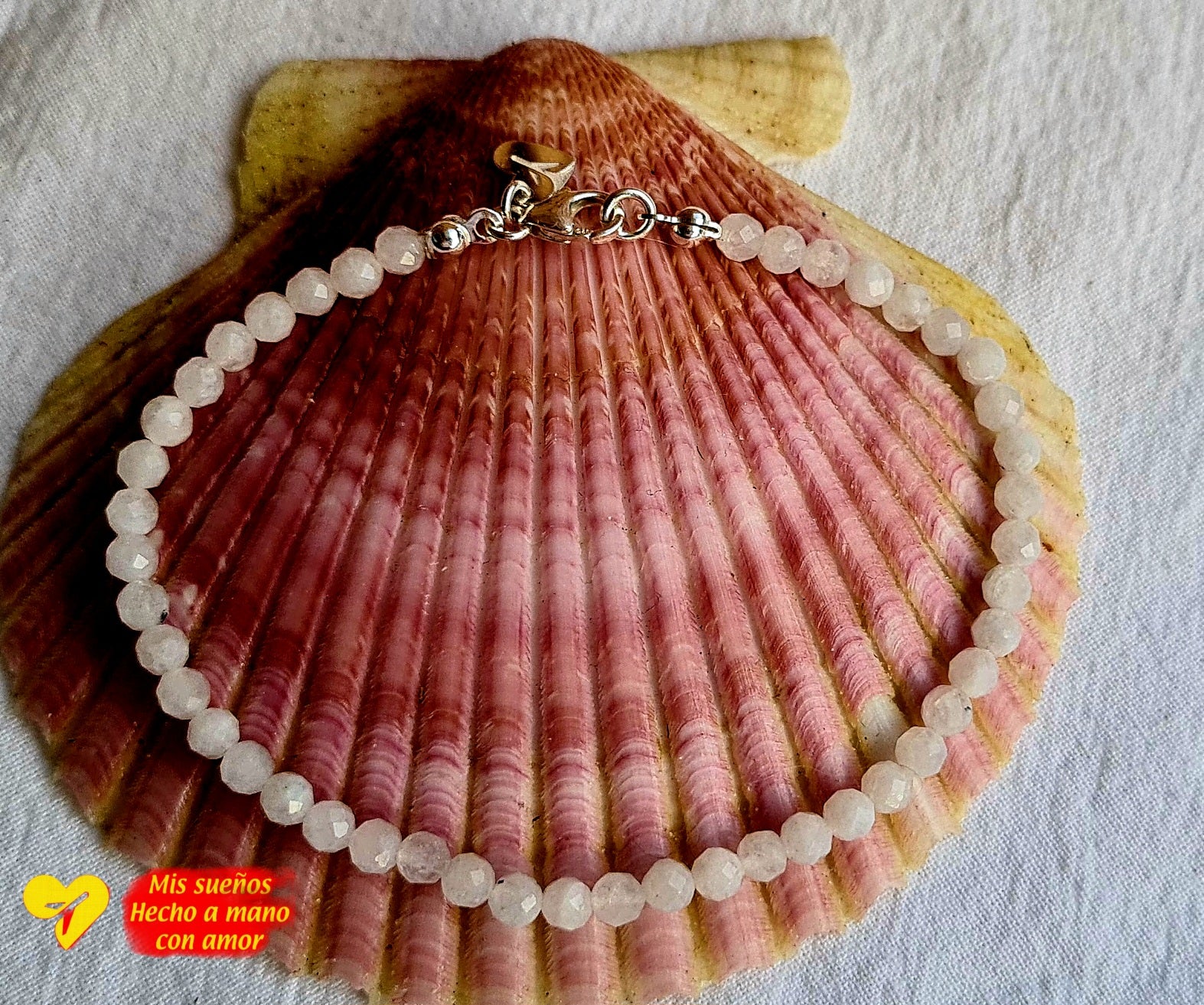 Ein wunderschönes Armband mit facetierten Edelstein-Perlen aus weißem Labradorit (4mm). Die Maße sind hier ca. 19cm, der Preis kann je nach Größenanfrage variieren. Die Perlen sind auf hochwertige Perlseide aufgefädelt und mit einem hochwertiger Karabiner-Verschluss 925 Silber versehen.