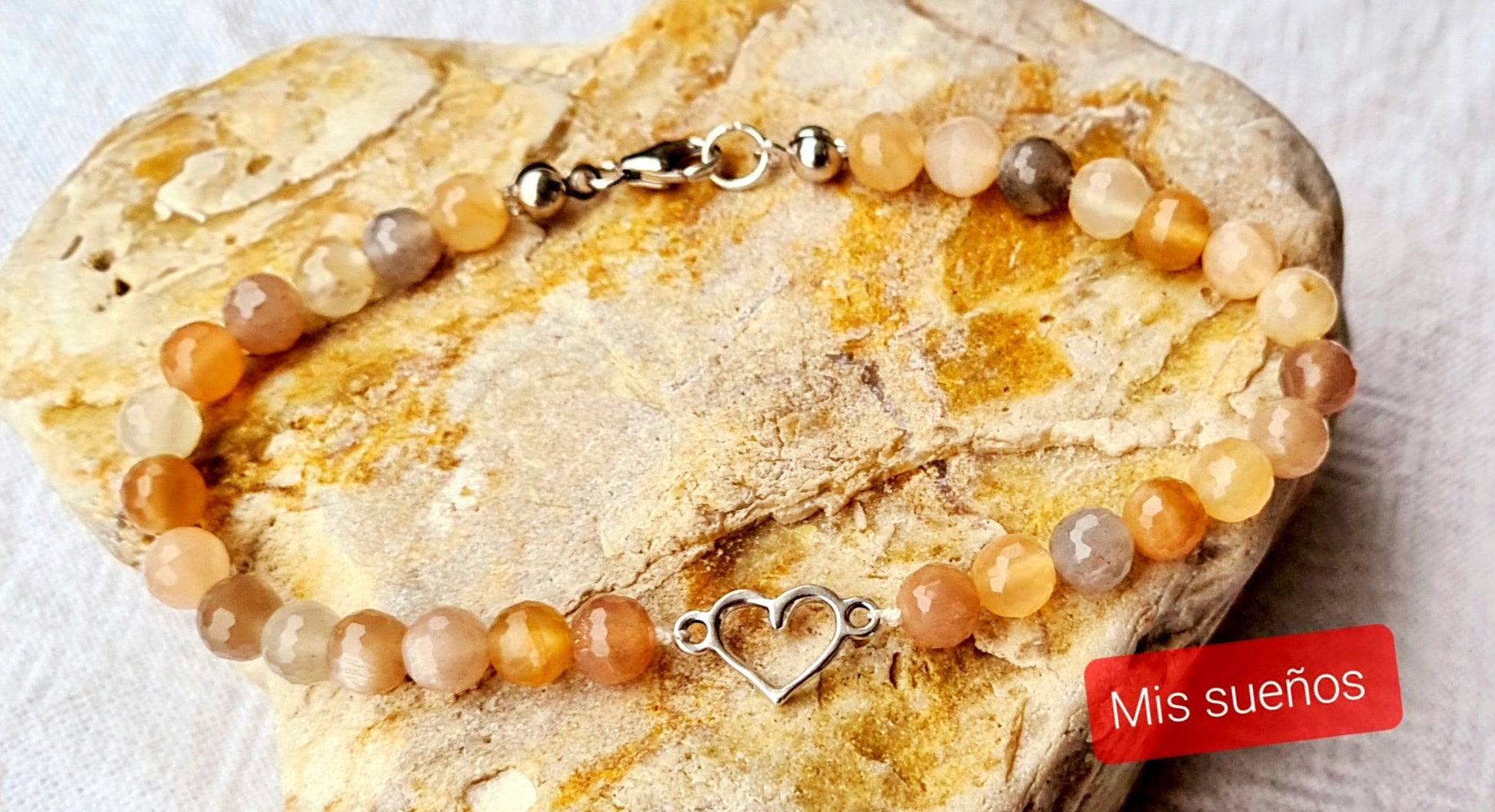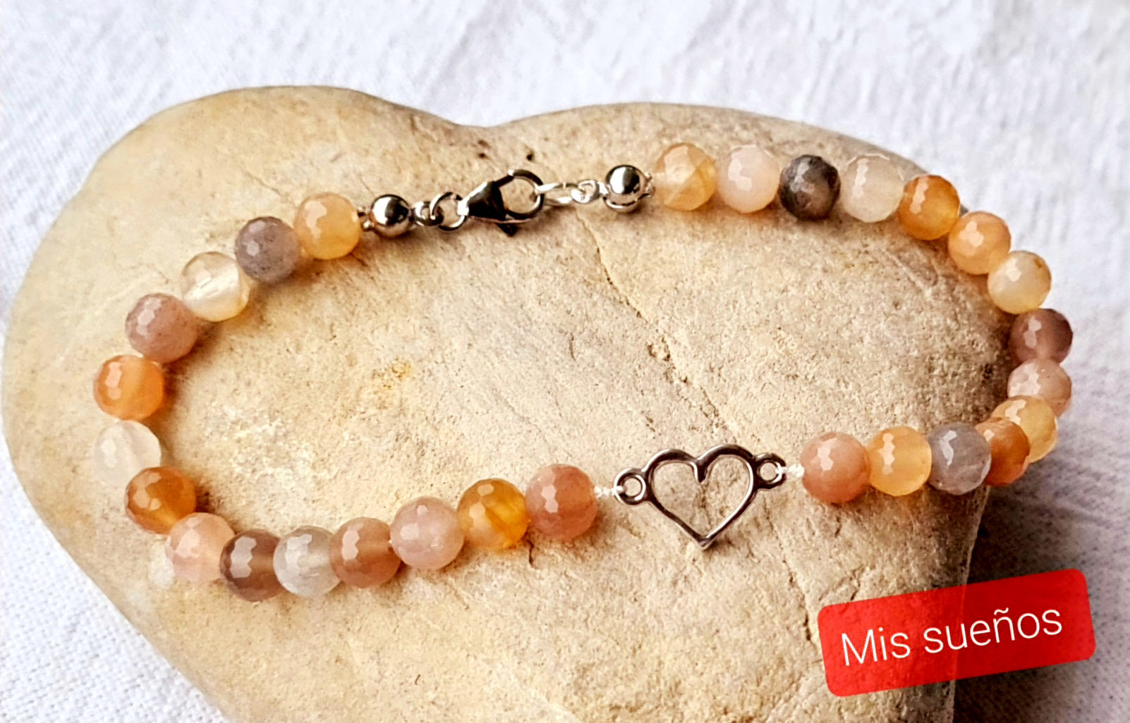 Das elegante Armband ist mit wunderschönen Edelstein-Perlen aus buntem Mondstein (6mm) besetzt, in der Mitte befindet sich ein Herzverbinder aus Metall (Zamak). Sie sind auf hochwertige Perlseide aufgefädelt und mit einem hochwertigen Karabiner-Verschluss 925 Silber versehen. Die Maße sind hier ca. 20cm, der Preis kann je nach Größenanfrage variieren. Die Perlen können auch auf hochqualitativen Makramee-Garn aufgefädelt werden.