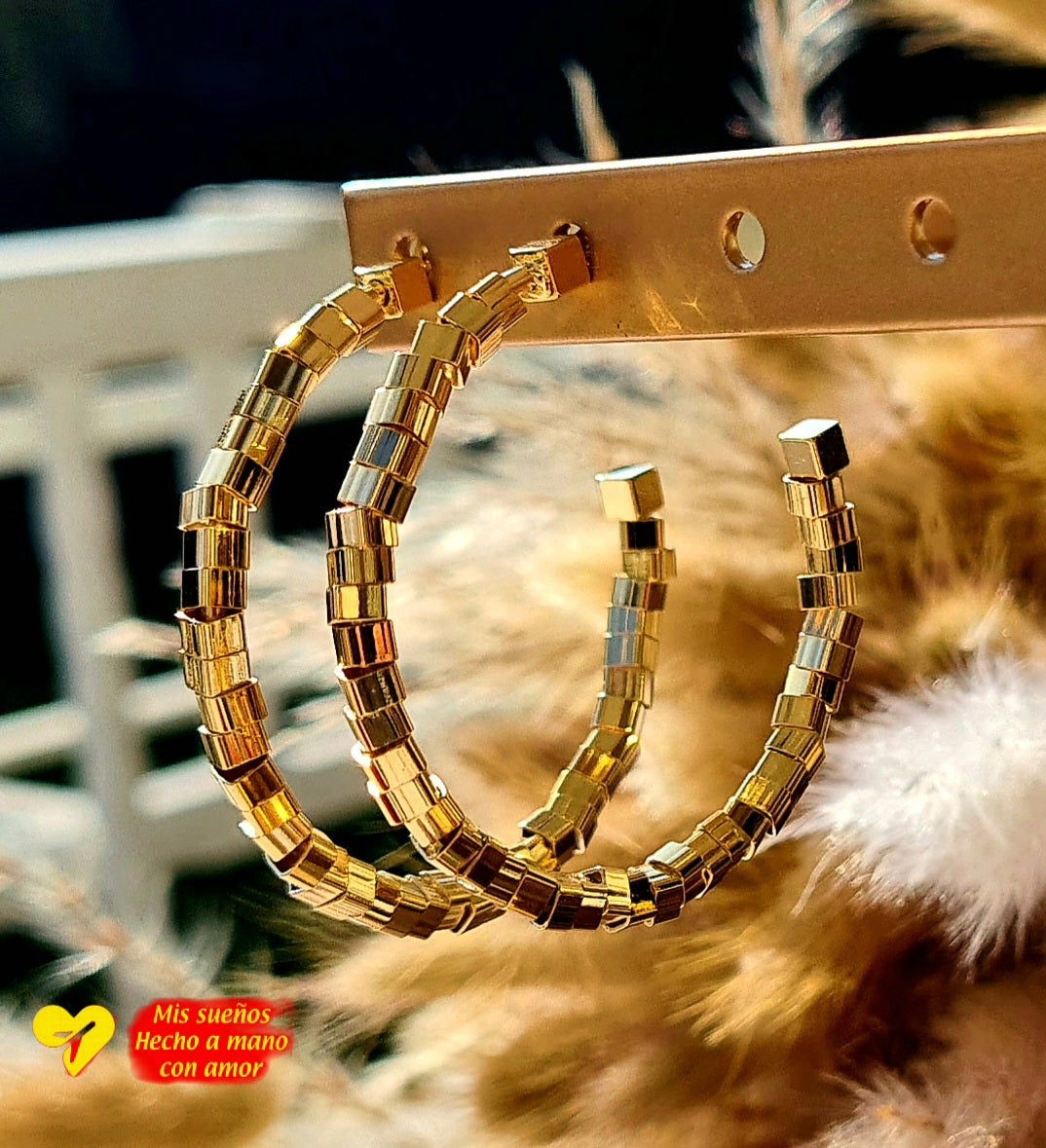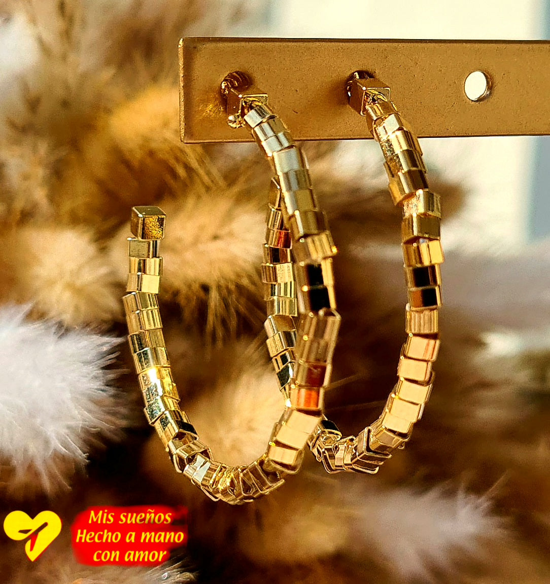 Diese coolen Creolen sind ein absolutes Highlight, hier hast du mal eine ganz andere Variante, die coole Effekte mit sich bringt. Durch die quadratischen Perlen, funkeln sie wie eine Diskokugel.