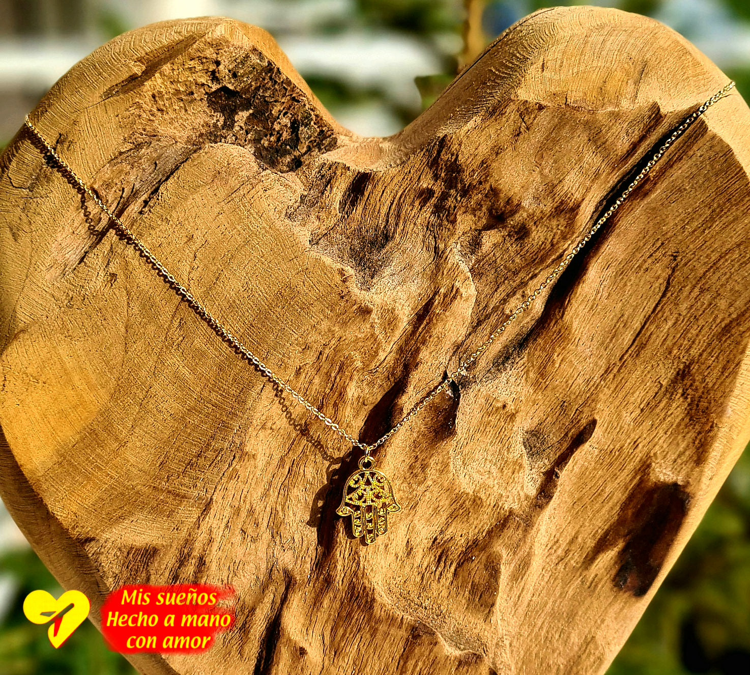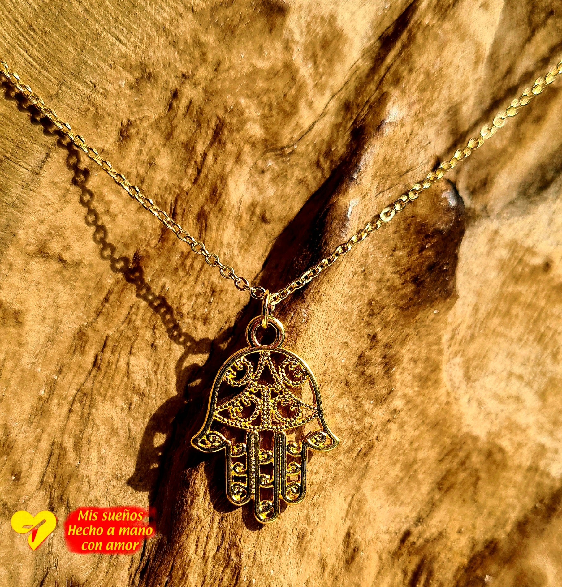 Fatimas Hand ist ein kulturelles Zeichen im islamischen Glauben. Sie gilt als schützend, gegen den Bösen Blick. Dieser tolle Anhänger besteht aus Metall (Zamak), kombiniert mit einer feinen goldenen Kette. Die Kette ist 50cm lang und in der Länge verstellbar. Sie besteht aus 925 Silber und ist 18 Karat vergoldet.