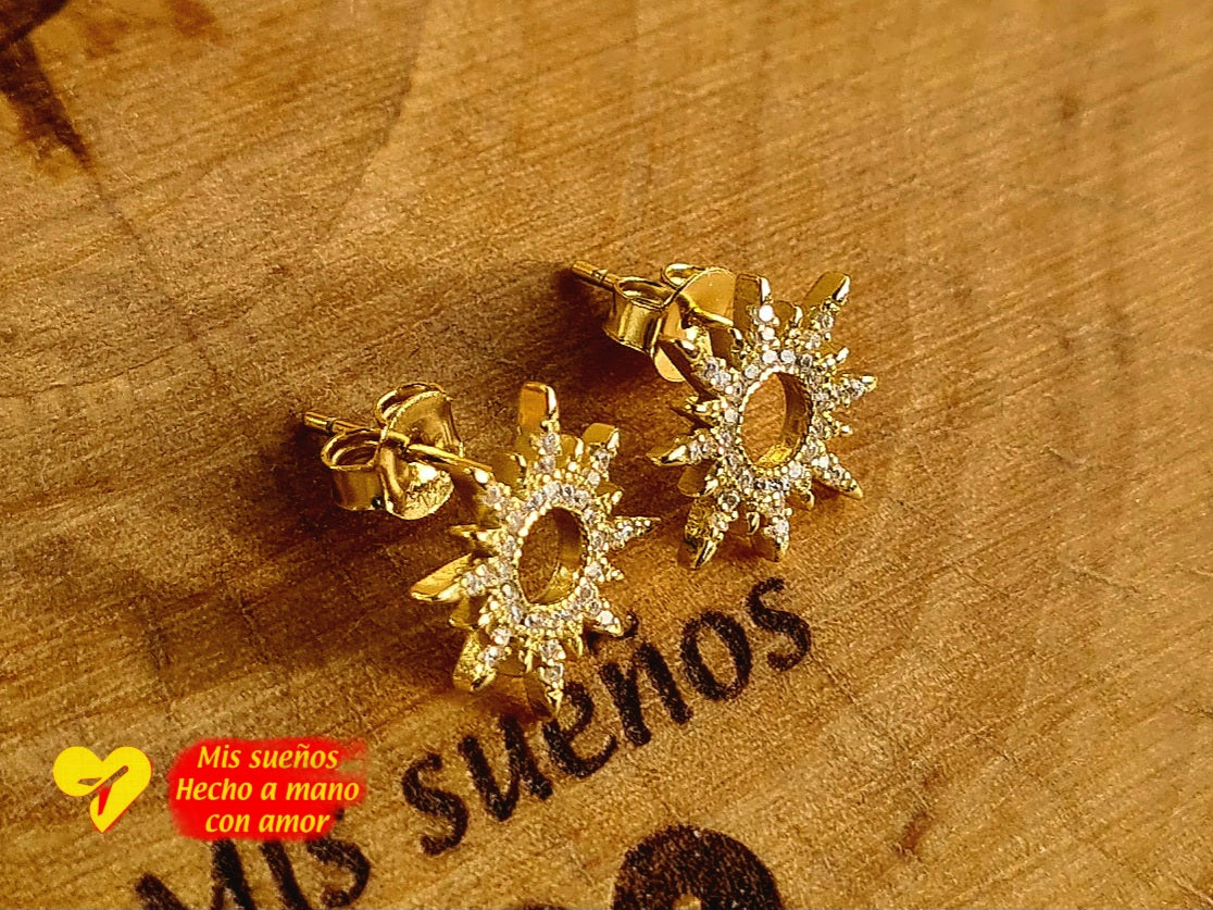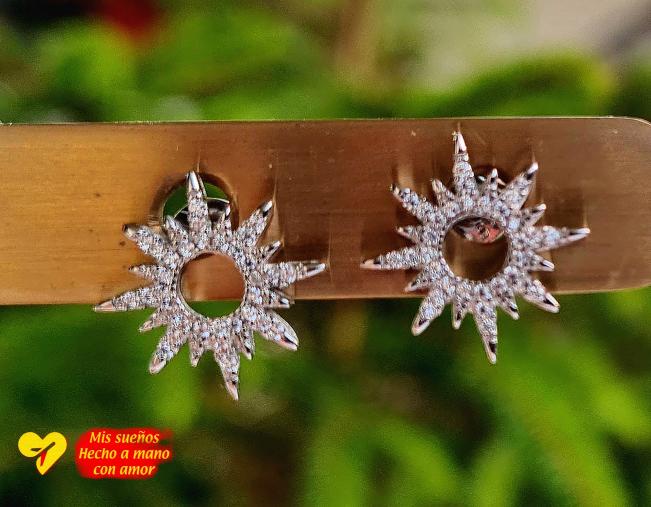Glänzende Ohrstecker "Sonne" 925 Sterling Silber