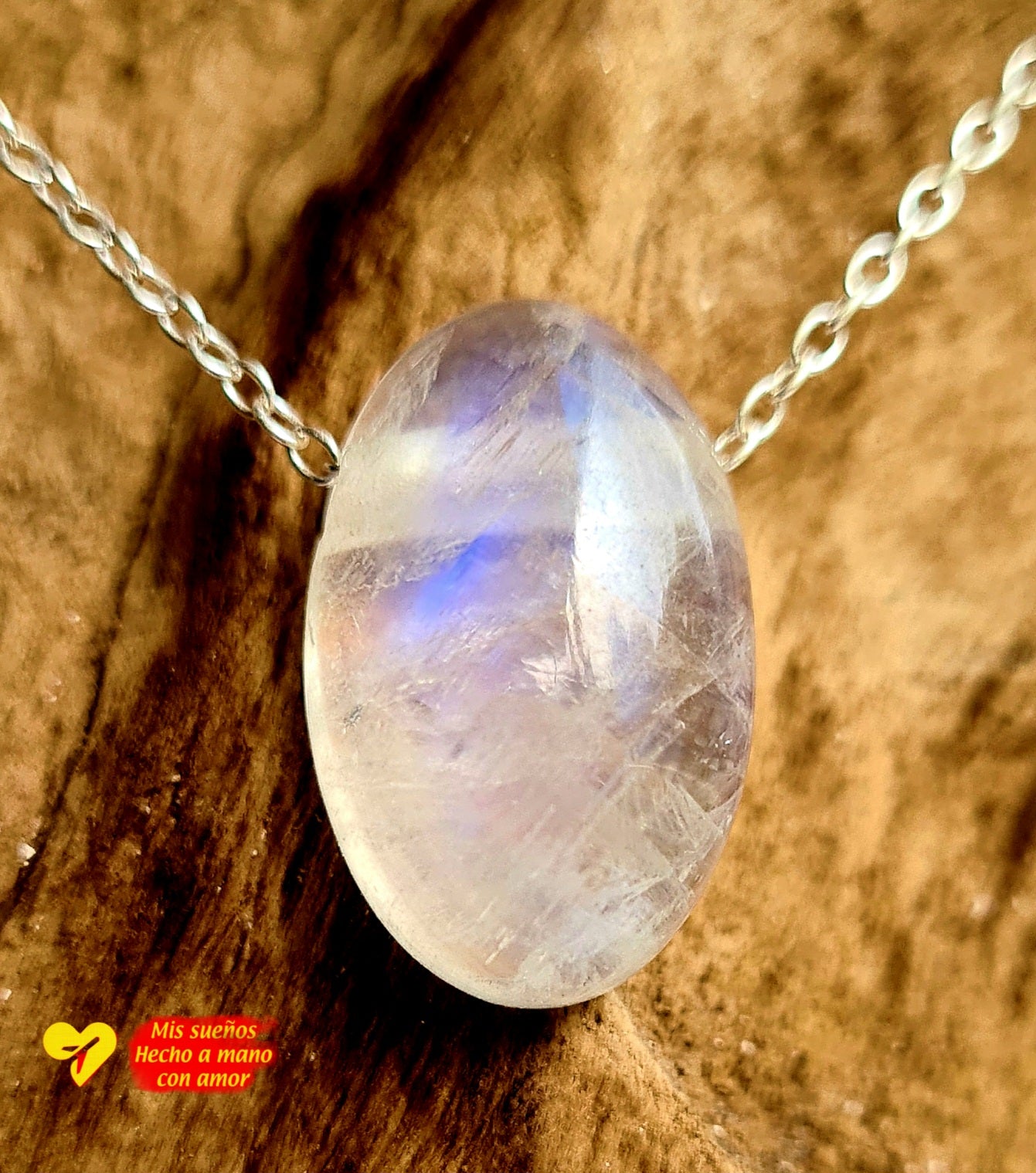 Ein wunderschöner weißer Labradorit-Anhänger, an einer feinen Silberkette. Die Kette ist ca. 50cm lang und aus 925 Silber. Der Labradorit-Stein ist mit seinem leicht blauen Schimmer einfach nur wunderschön und ein dezenter Begleiter für den Alltag, die Qualität ist top. Die Kette kann auf Wunsch in der länge angepasst werden. Gerne per Mail anfragen.