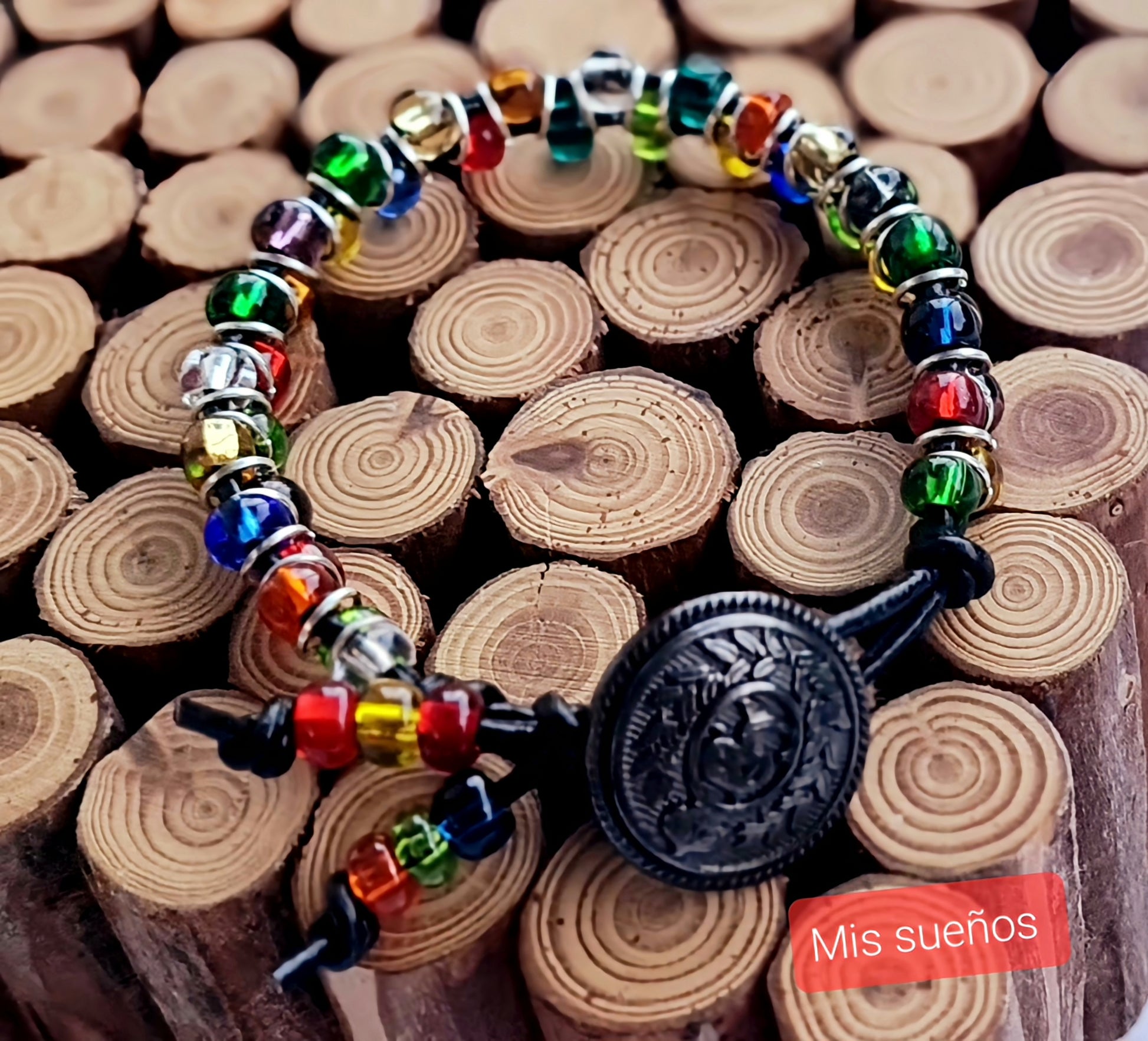 Dieses schöne hochwertig gearbeitete Perlen-Armband "Juego de perlas" ist mit seinem Zick Zack Muster und dem stabilen Lederband ein echter Hingucker. Auch hier hat man die Möglichkeit, verschiedene Farben ins Spiel zu bringen. Das Armband ist mit einem Knopfverschluss versehen, welcher zusätzlich ein tolles Accessoires ist.
