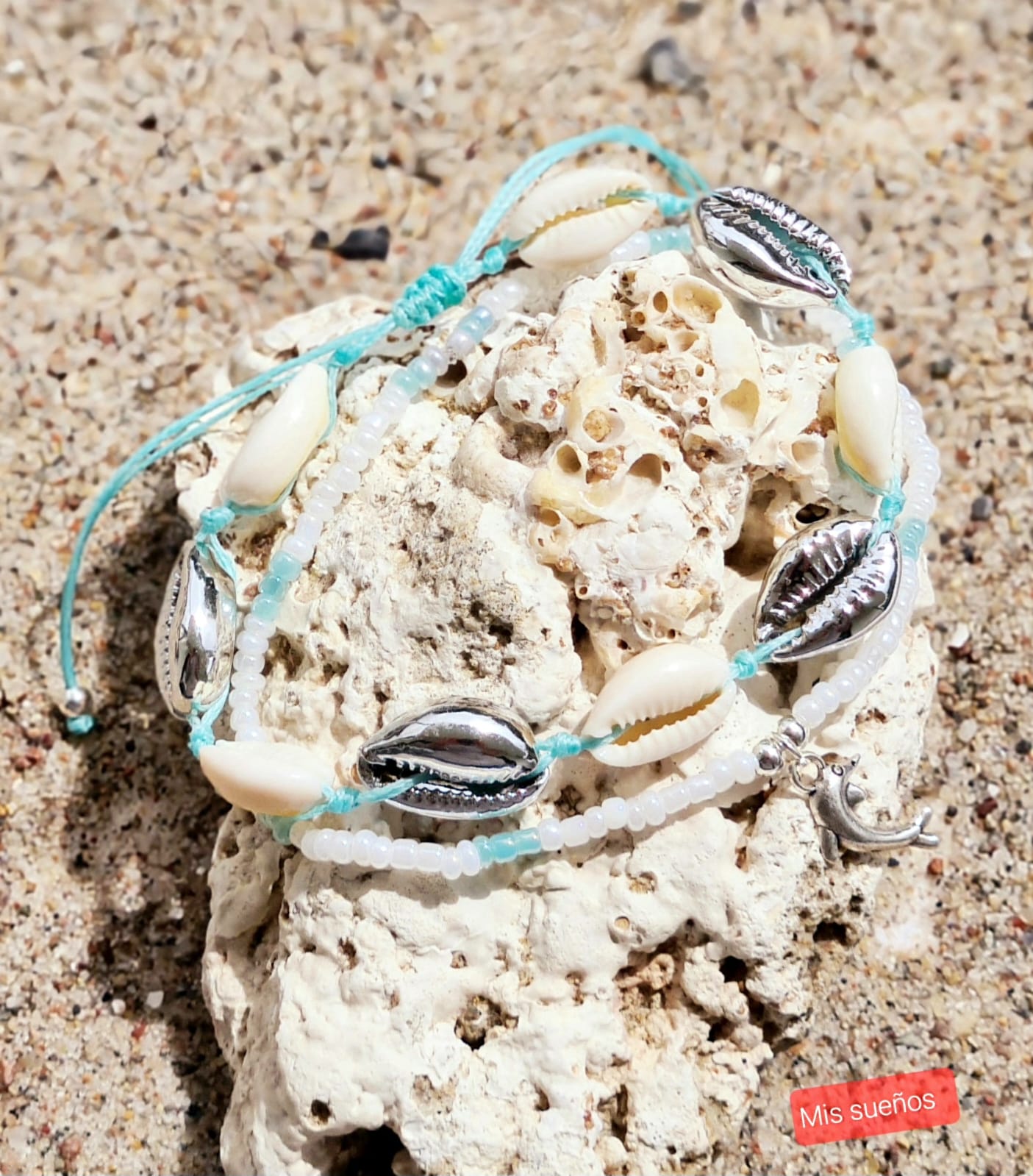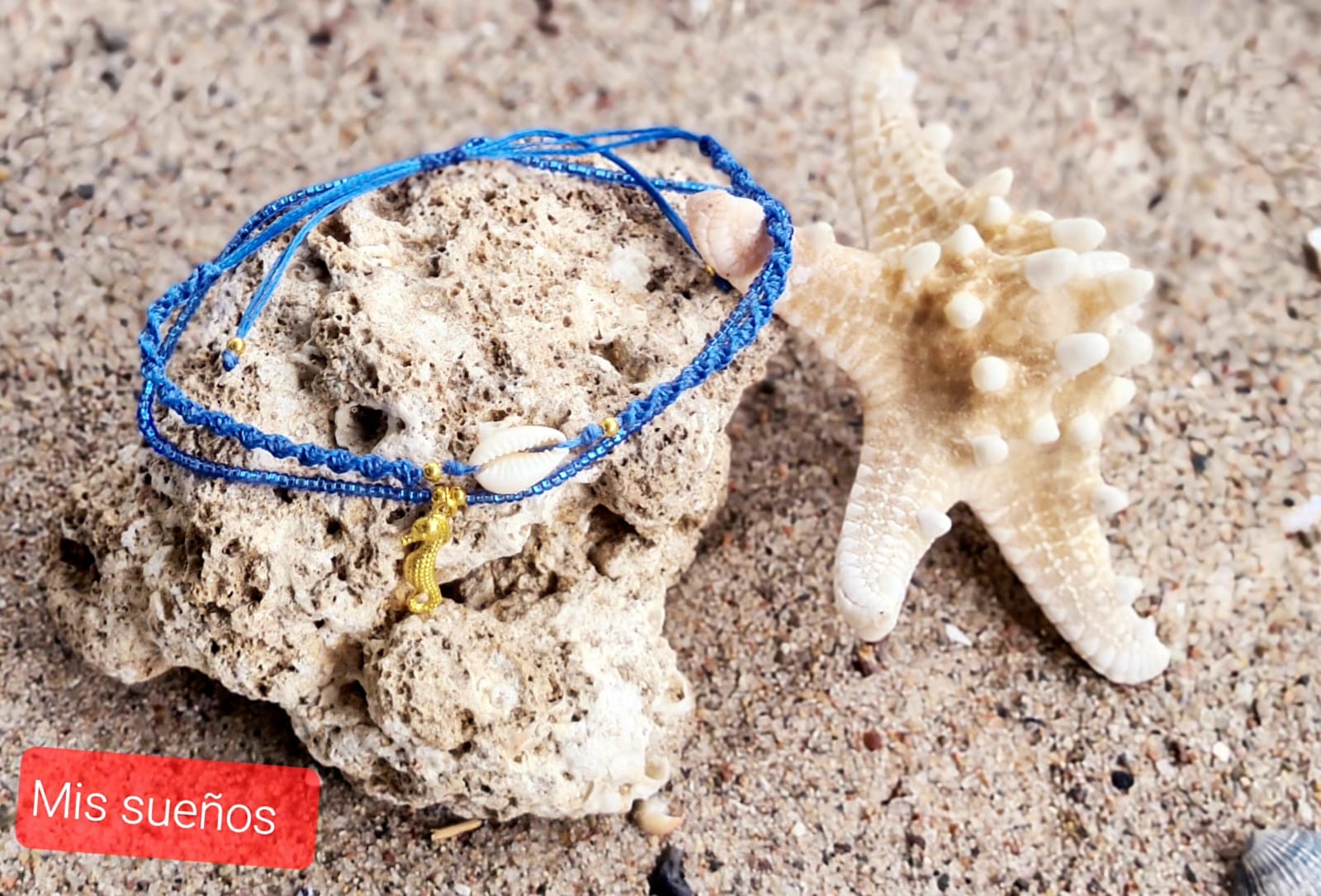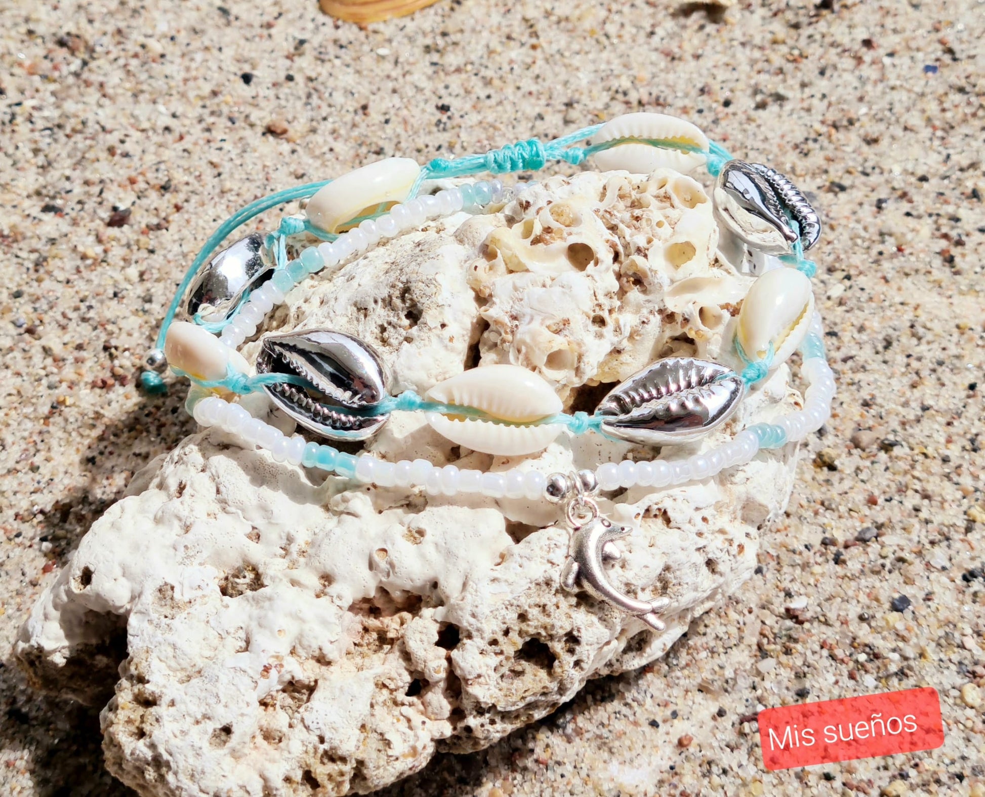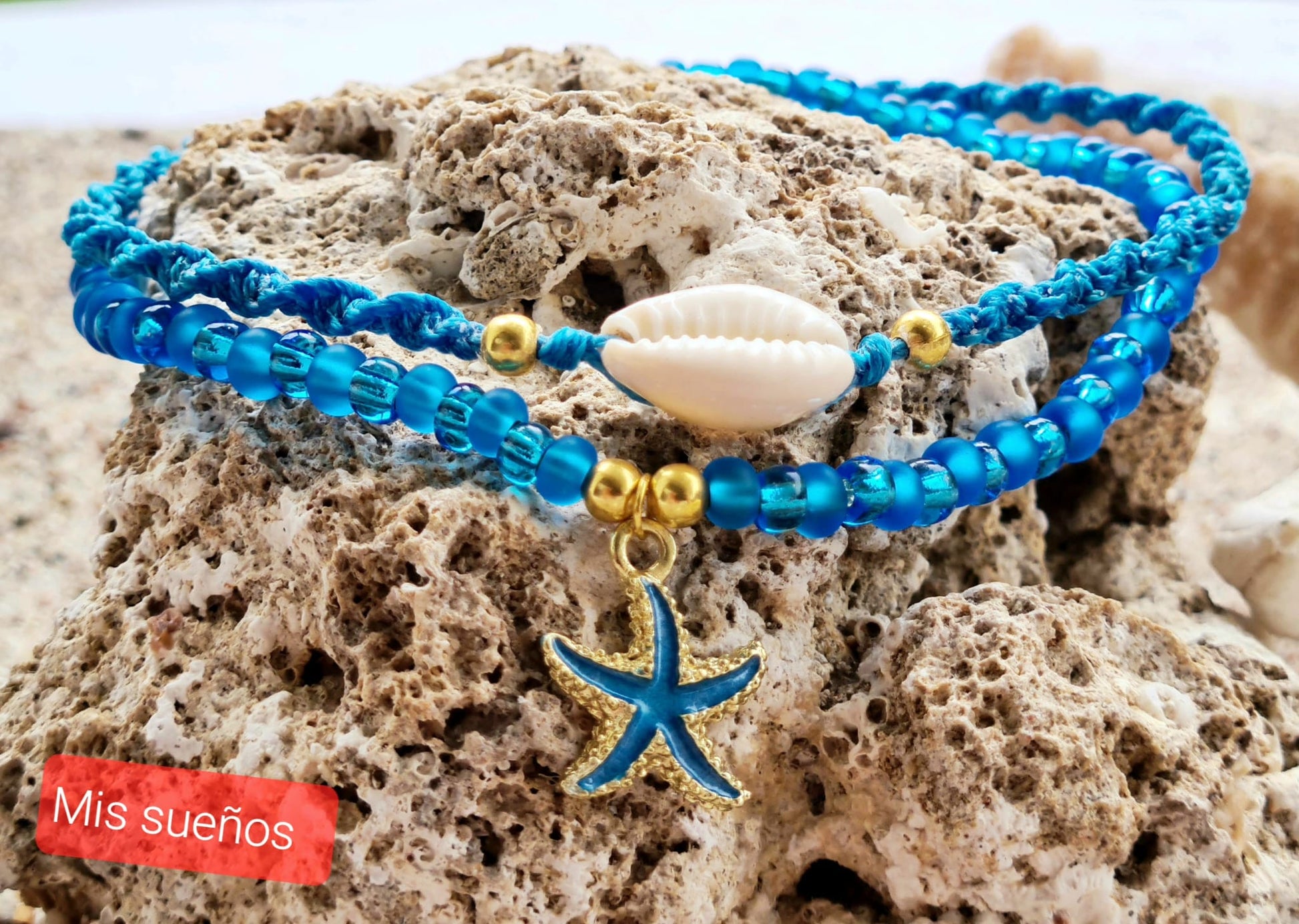 Das 2er Fußkettchenset "Llamada del mar" ist ein Traum für alle, die sich gerne an Sommer, Sonne Strand und Meer erinnern. Hier wird Makramee- mit Perlen-Schmuck vereint und farblich aufeinander abgestimmt.