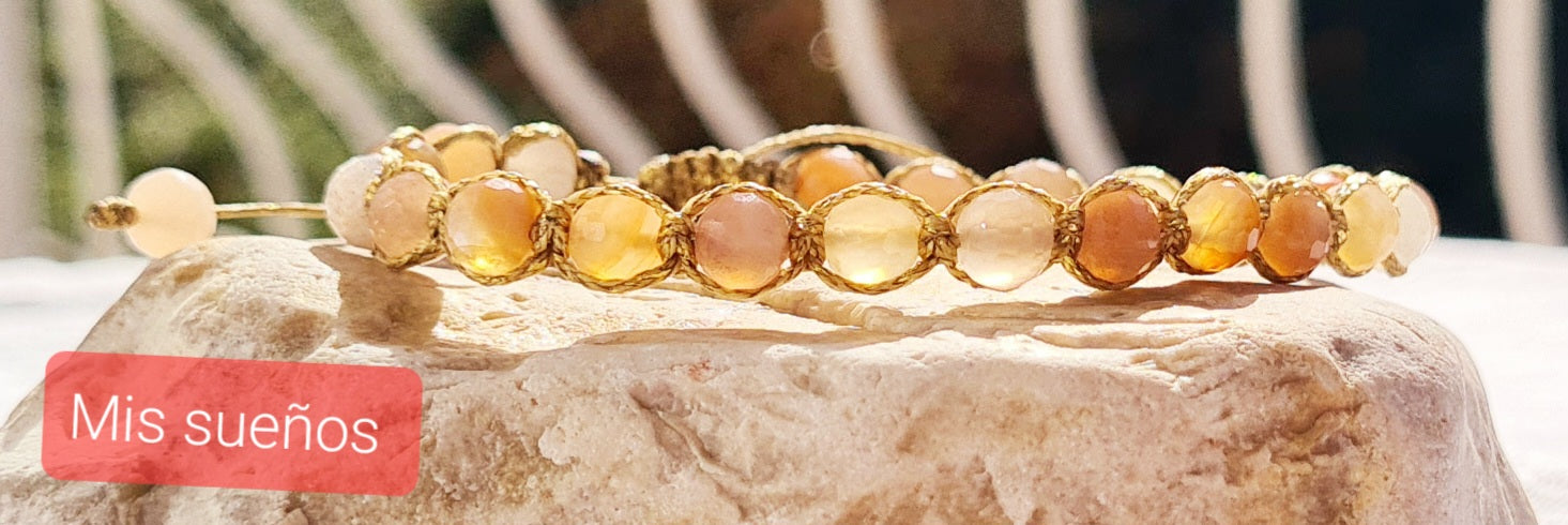 Ein wunderschönes glitzerndes goldenes Makramee-Armband aus hochqualitativem Garn umschmeichelt die hochwertigen Mondstein Edelstein-Perlen (6mm). Die Maße sind hier ca. 17cm, der Preis kann je nach Größenanfrage variieren. Das Armband ist mit einem Makramee-Zugverschluss versehen.