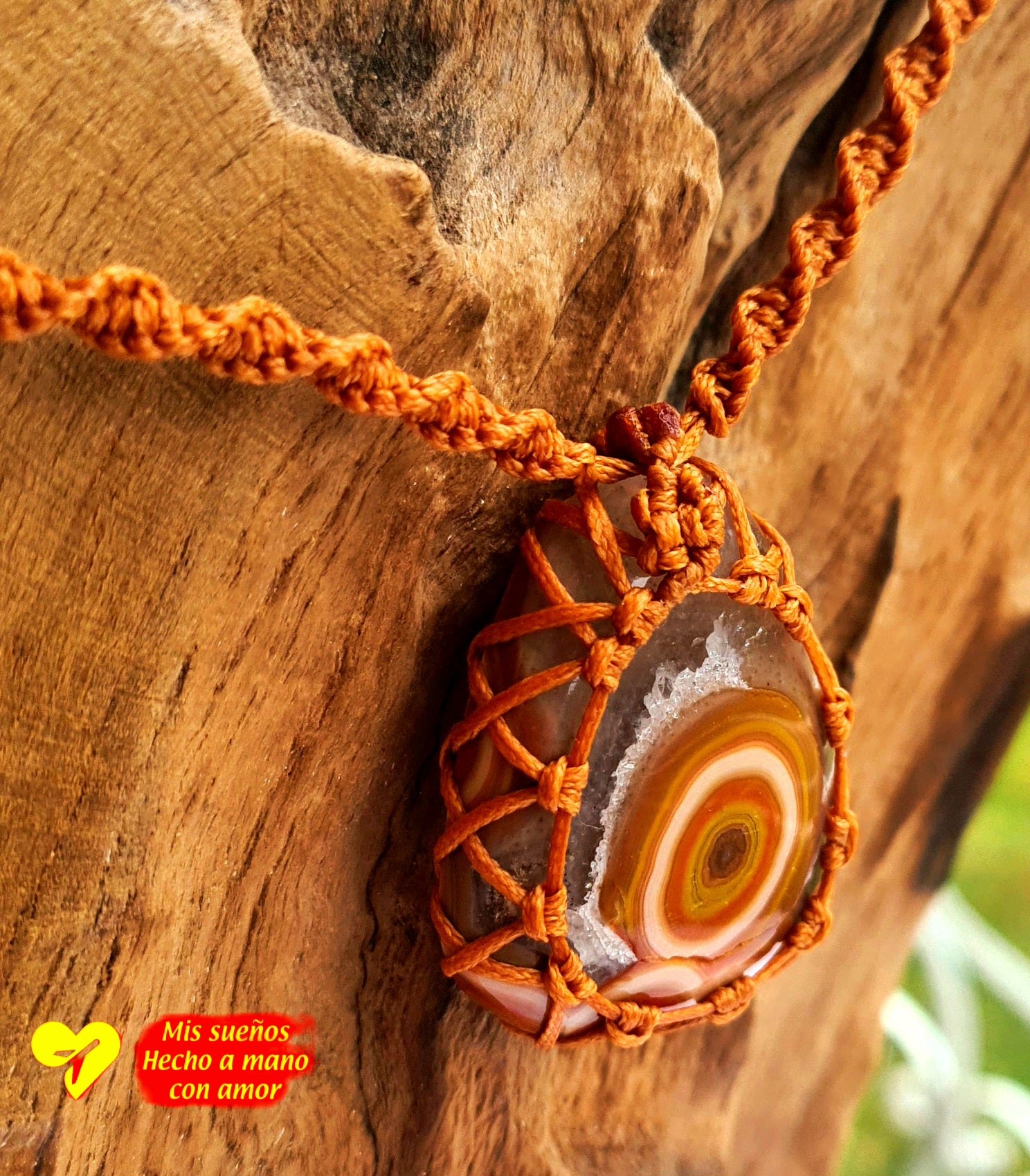 Makramee-Halskette m. Achat Cabochon (Steinbeispiel)