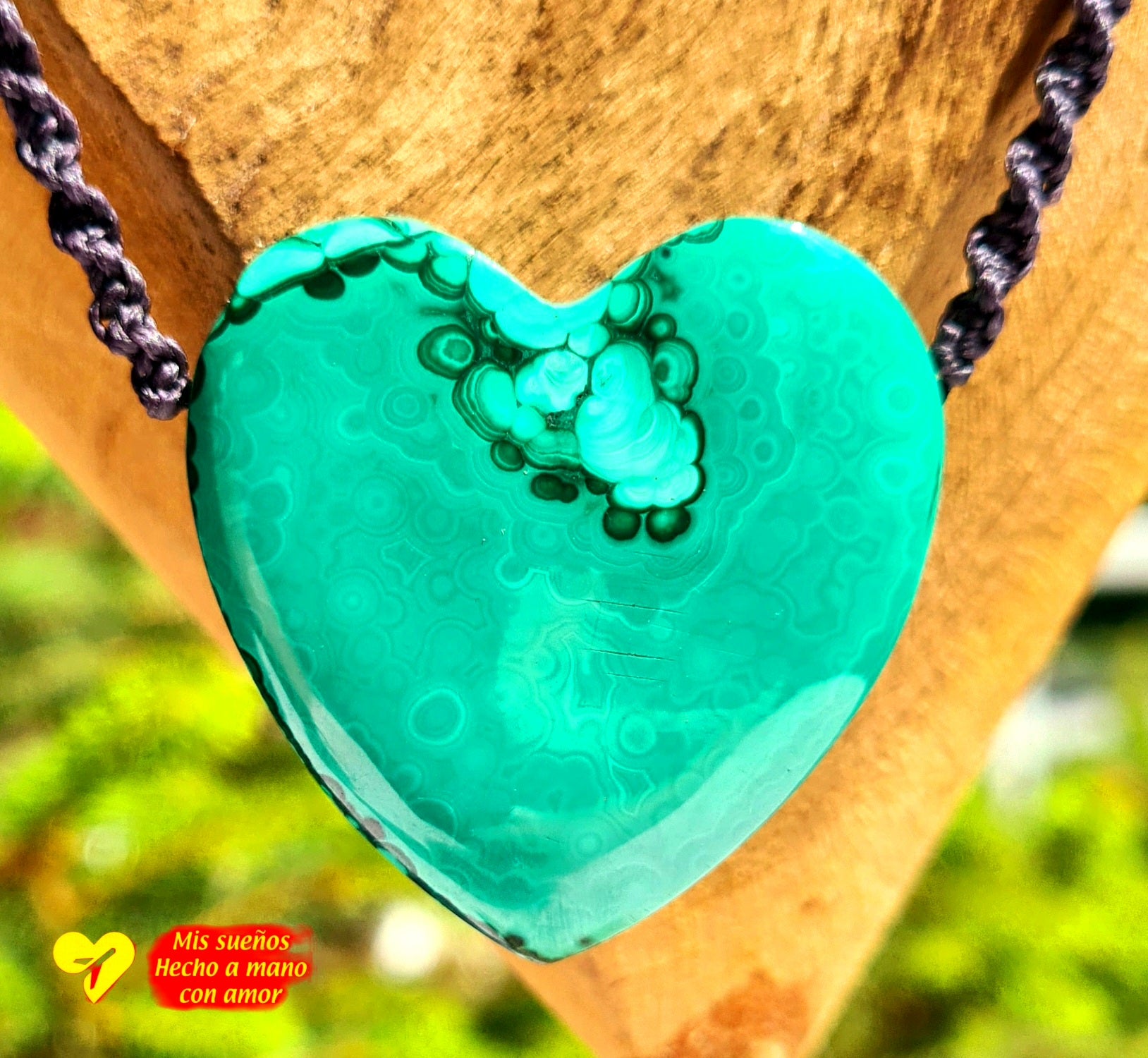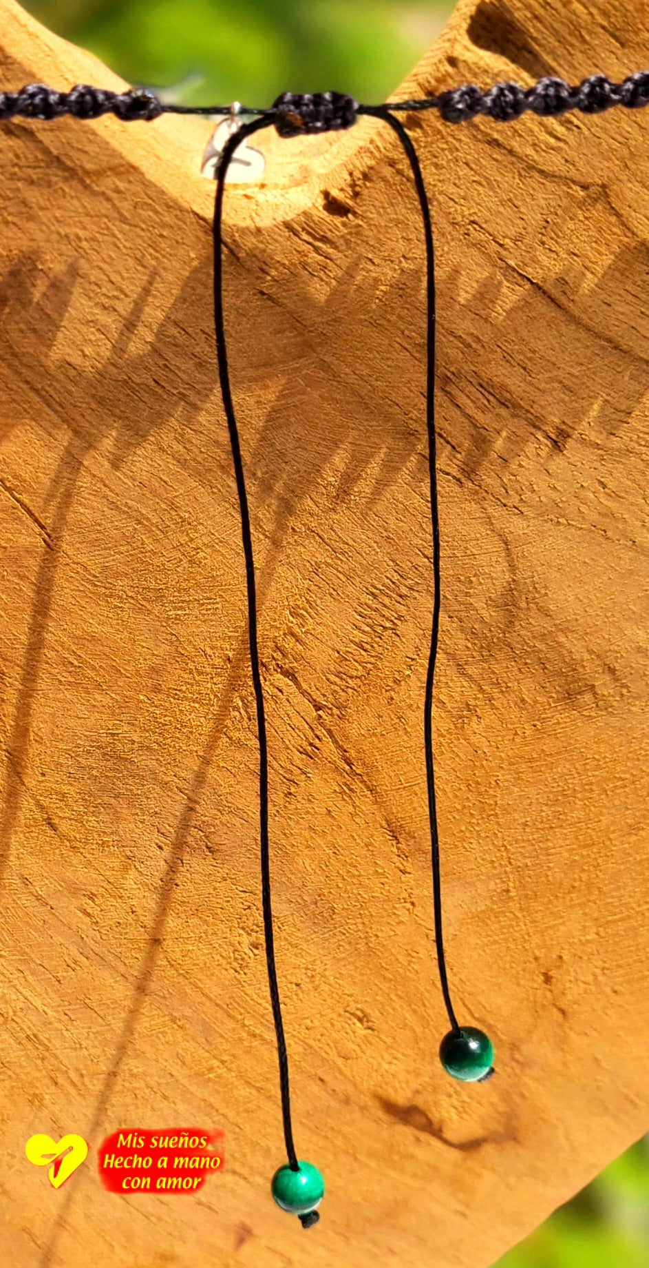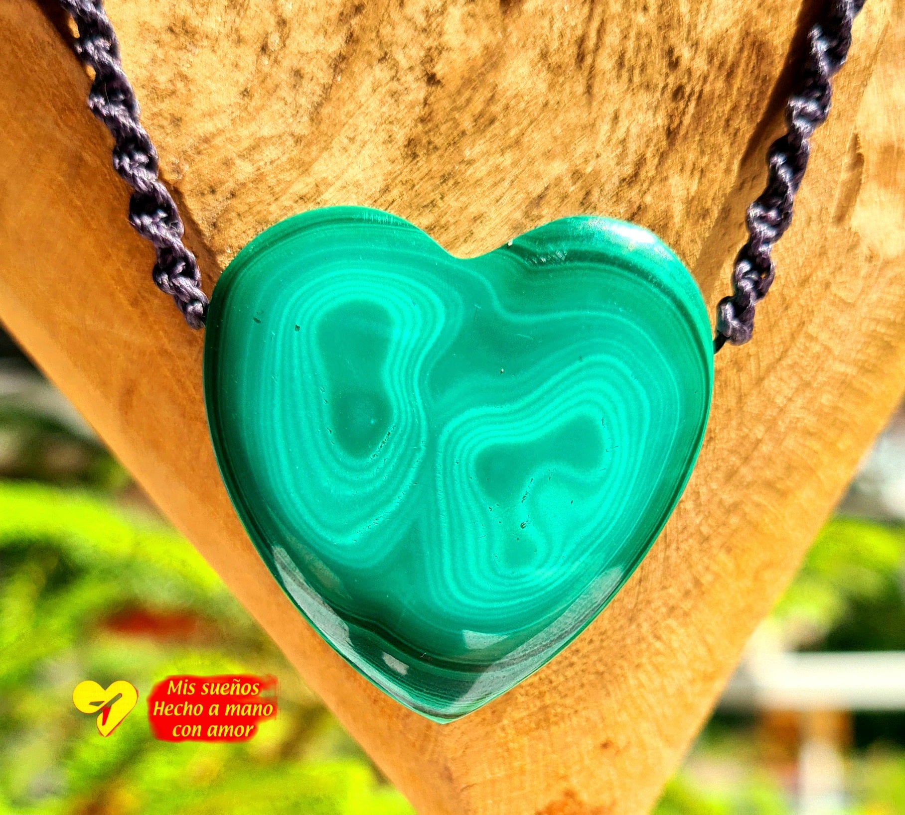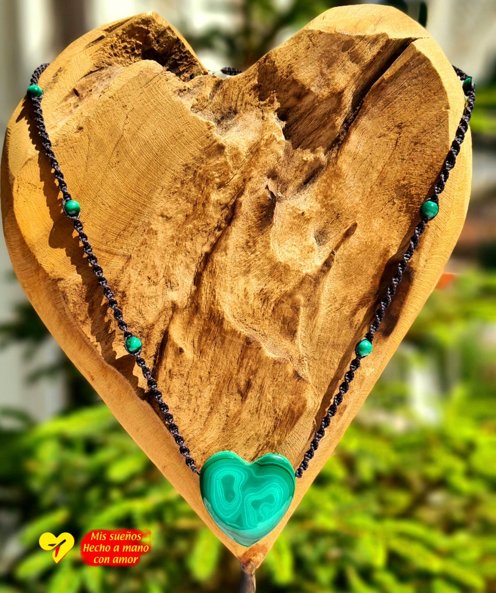 Diese traumhaft schöne Halskette ist im lockeren Makramee-Stil aus hochqualitativem Garn gefertigt. In die feine Handarbeit sind Malachit-Perlen (6mm) eingearbeitet. Das wunderschöne Malachit-Herz ist ein absolutes Highlight an dieser tollen Kette. Die Halskette ist ca. 30cm lang und kann auf 40cm verlängert werden. Sie ist mit einem Makramee-Zugverschluss versehen. Verschiedene Varianten sind möglich, einfach vor der Bestellung eine Mail an mich senden und ich gehe gerne auf deine Wünsche ein.