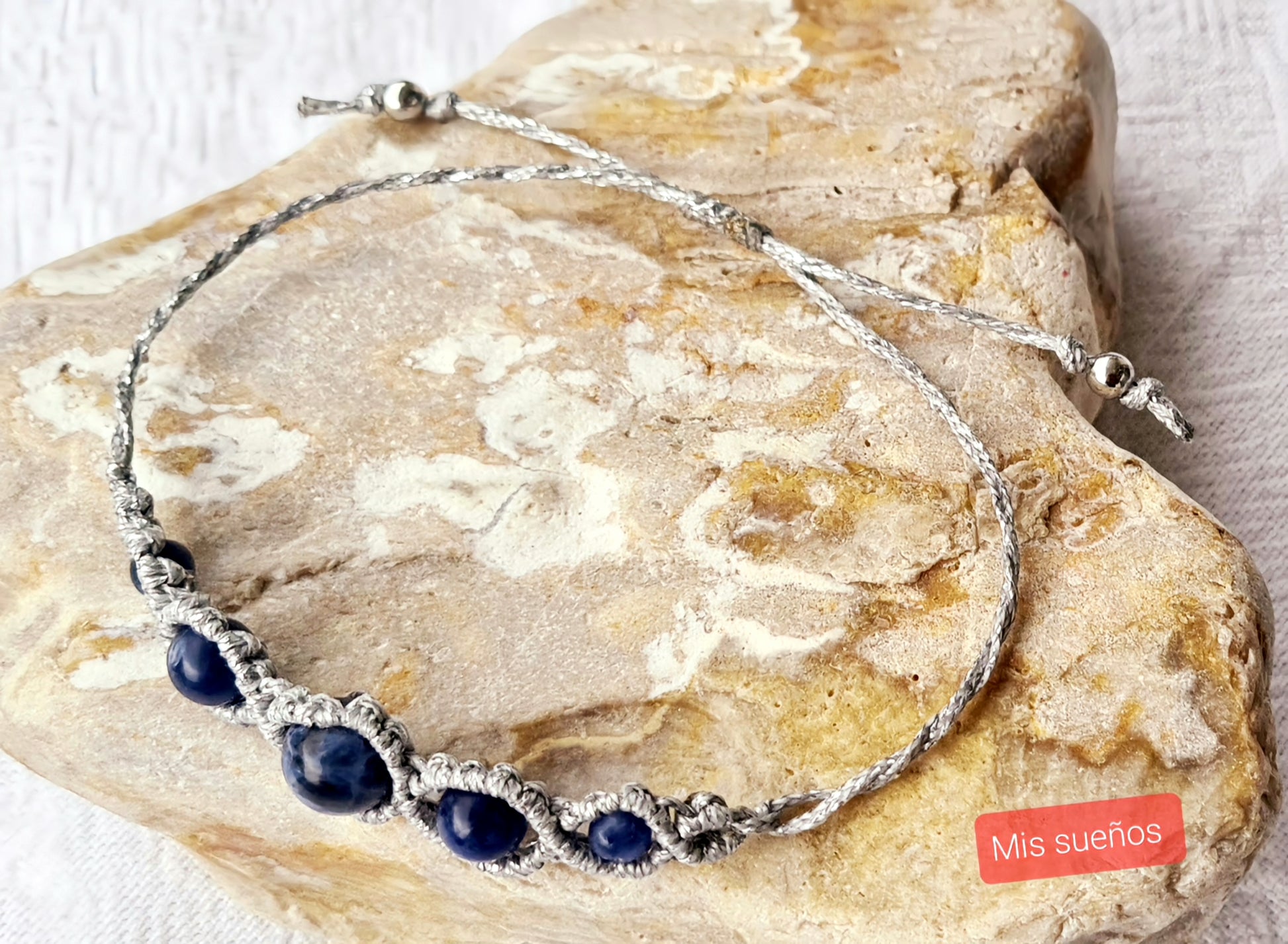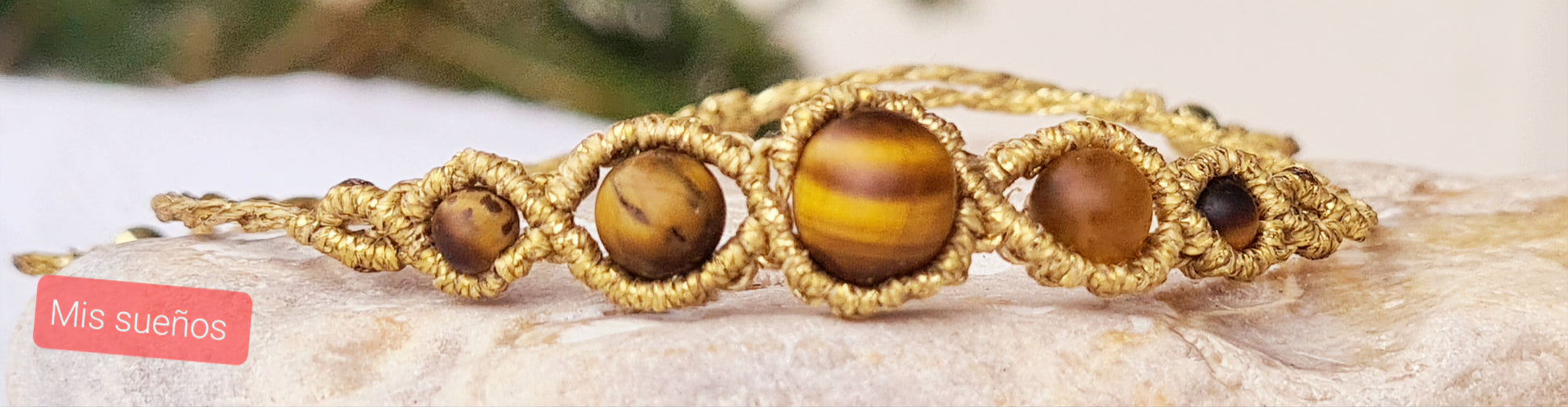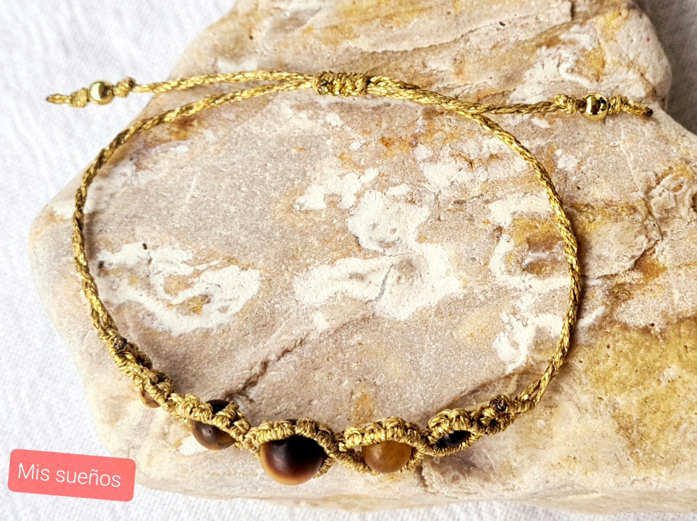 Ein wunderschönes glitzerndes Makramee-Armband aus hochqualitativem Garn umschmeichelt die hochwertigen Naturstein-Perlen (8, 6 und 4mm). Die Maße sind hier ca. 19cm. Das Armband ist mit einem Makramee-Zugverschluss versehen.