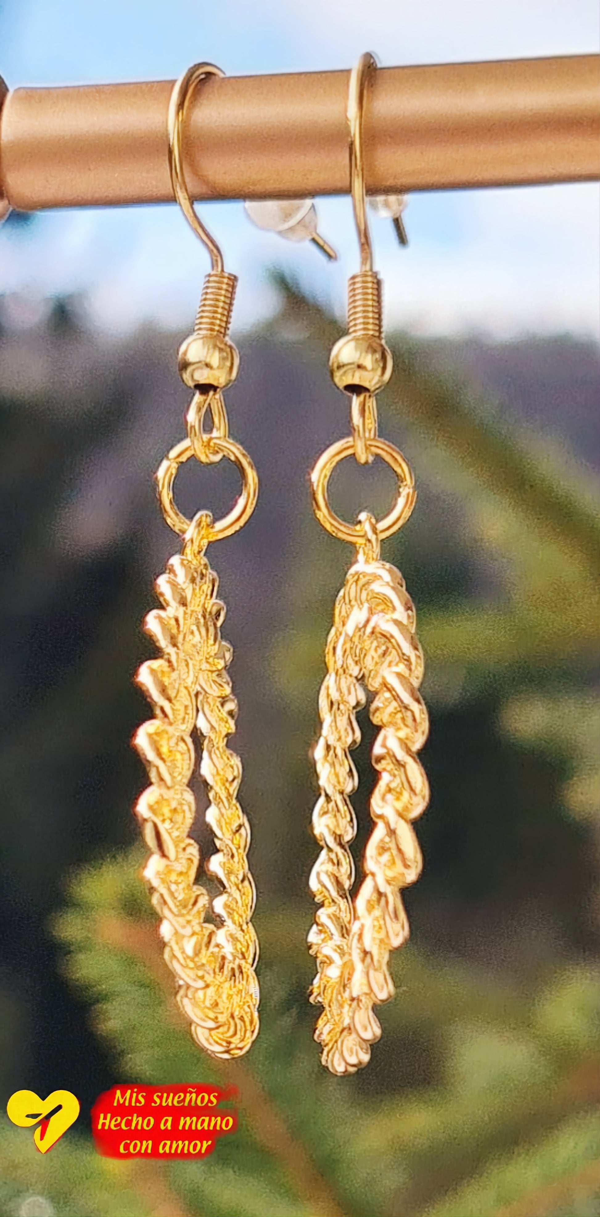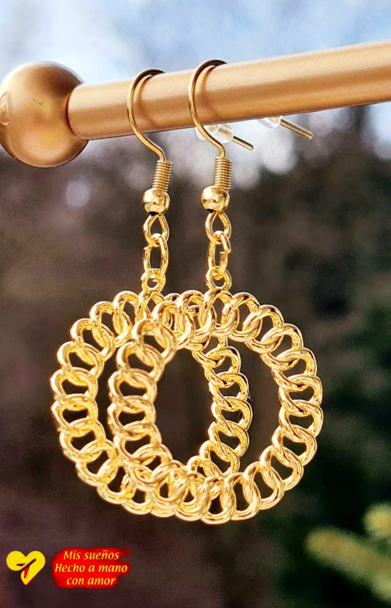 Die Haken sind auf 925 Silber 18K vergoldet, die Kreise sind aus Messing und mit einer sehr dicken Schicht 18K vergoldet. Sie sind mit einem Gummipfropfen als Verrutschsicherung versehen.