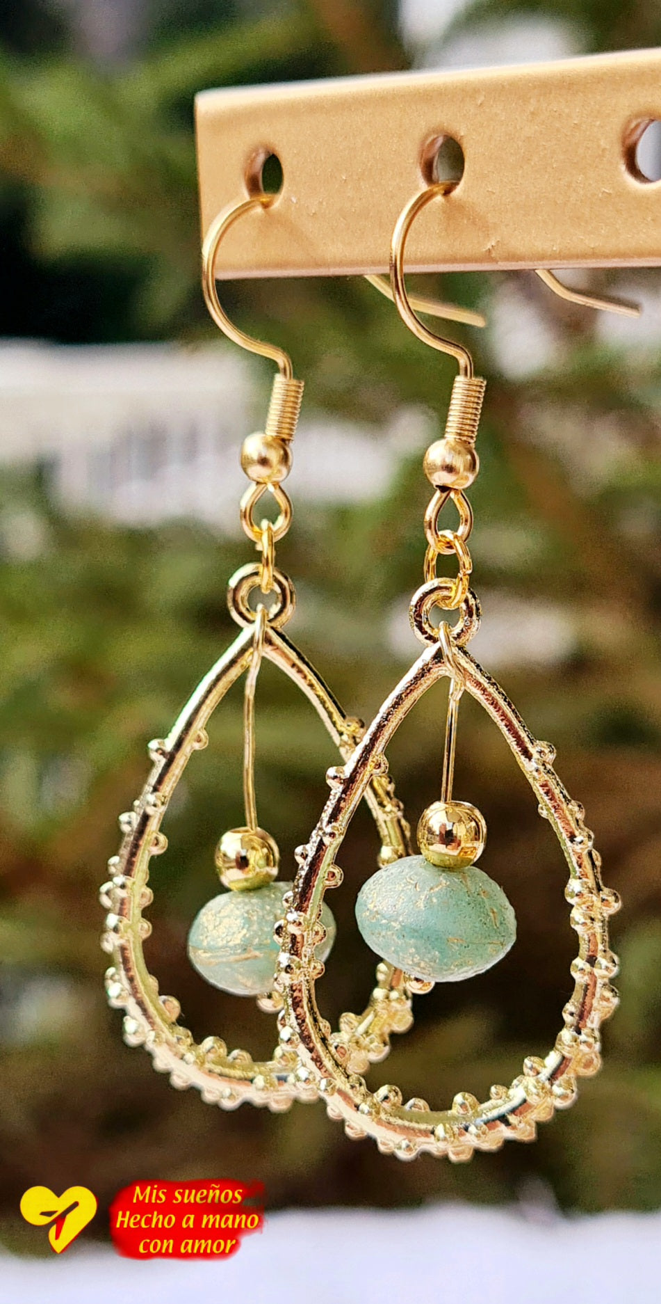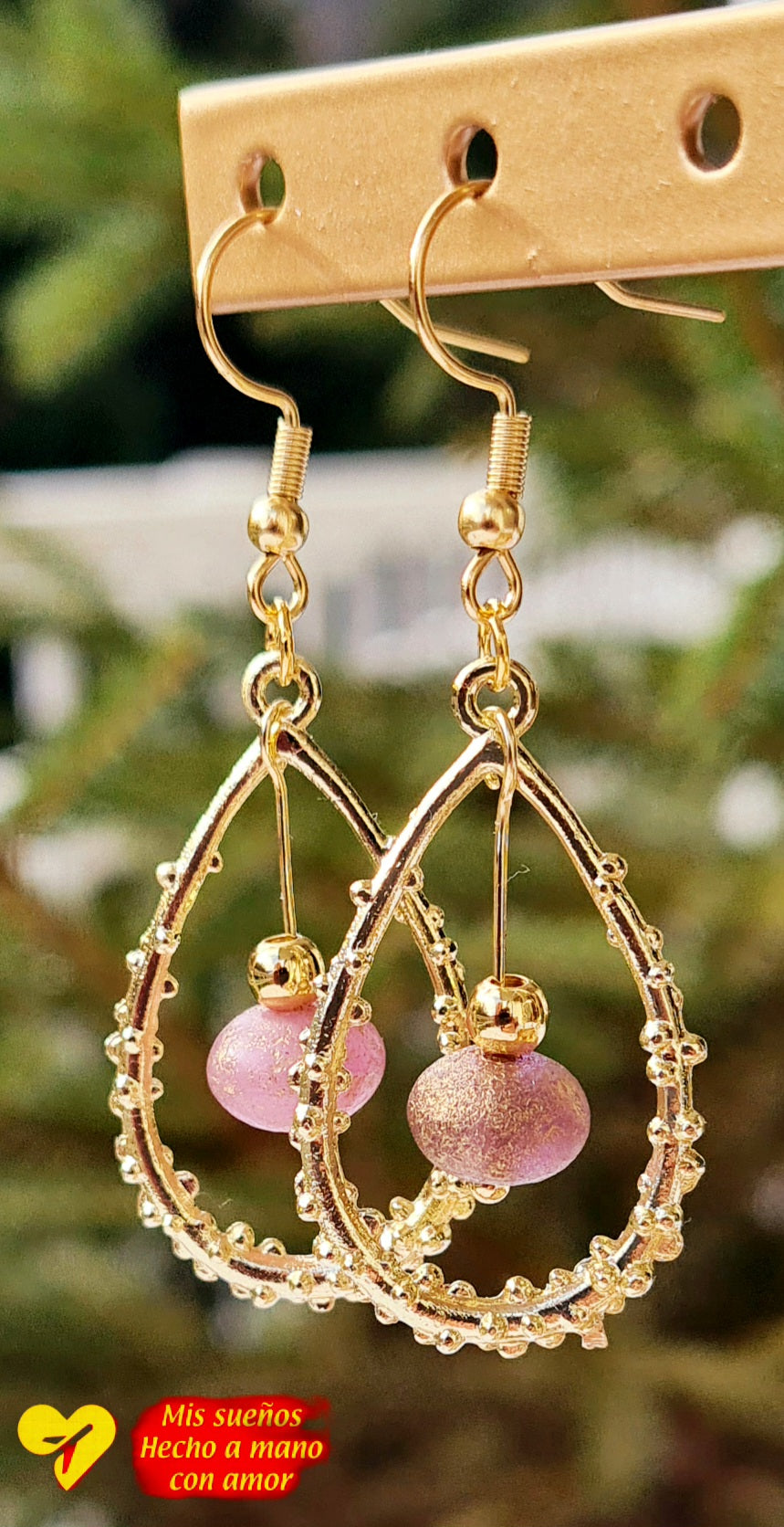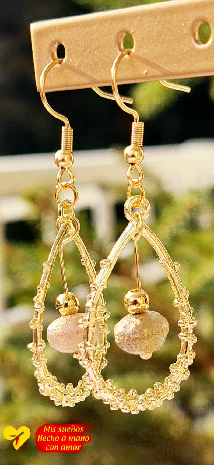 Die Haken sind auf 925 Silber 18K vergoldet, die Tropfen und goldenen Perlen sind aus Messing und mit einer sehr dicken Schicht 18K vergoldet. Die bunten Perlen bestehen aus Seeglas. Gummipfropfen, werden als Verrutschsicherung mitgeliefert.