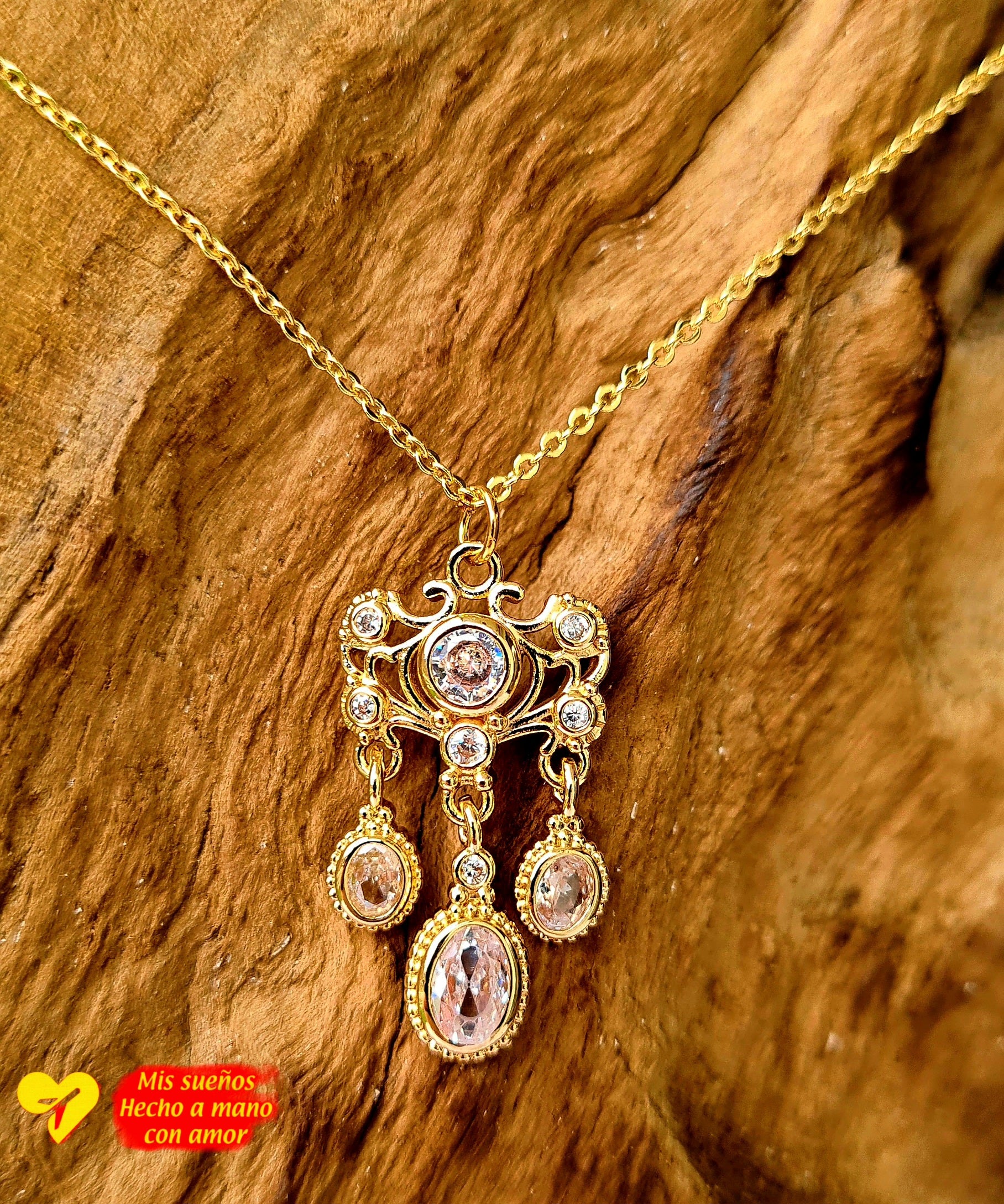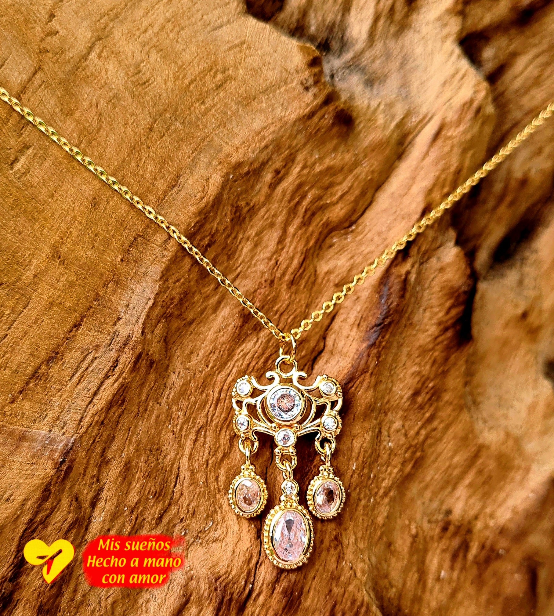 Ein wunderschöner Boho Anhänger, an einer feinen goldenen Kette. Die Kette ist 50cm lang und in der Länge verstellbar. Sie besteht aus 925 Silber und ist 18 Karat vergoldet. Der Anhänger besteht aus Messing und ist 14 Karat vergoldet. Er wird von wunderschönen Zirkonia Steinen geziert.