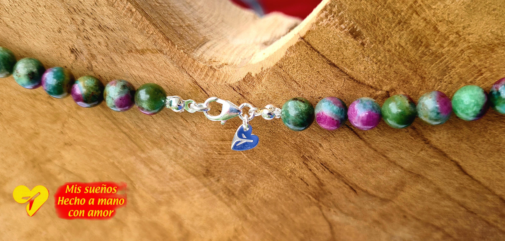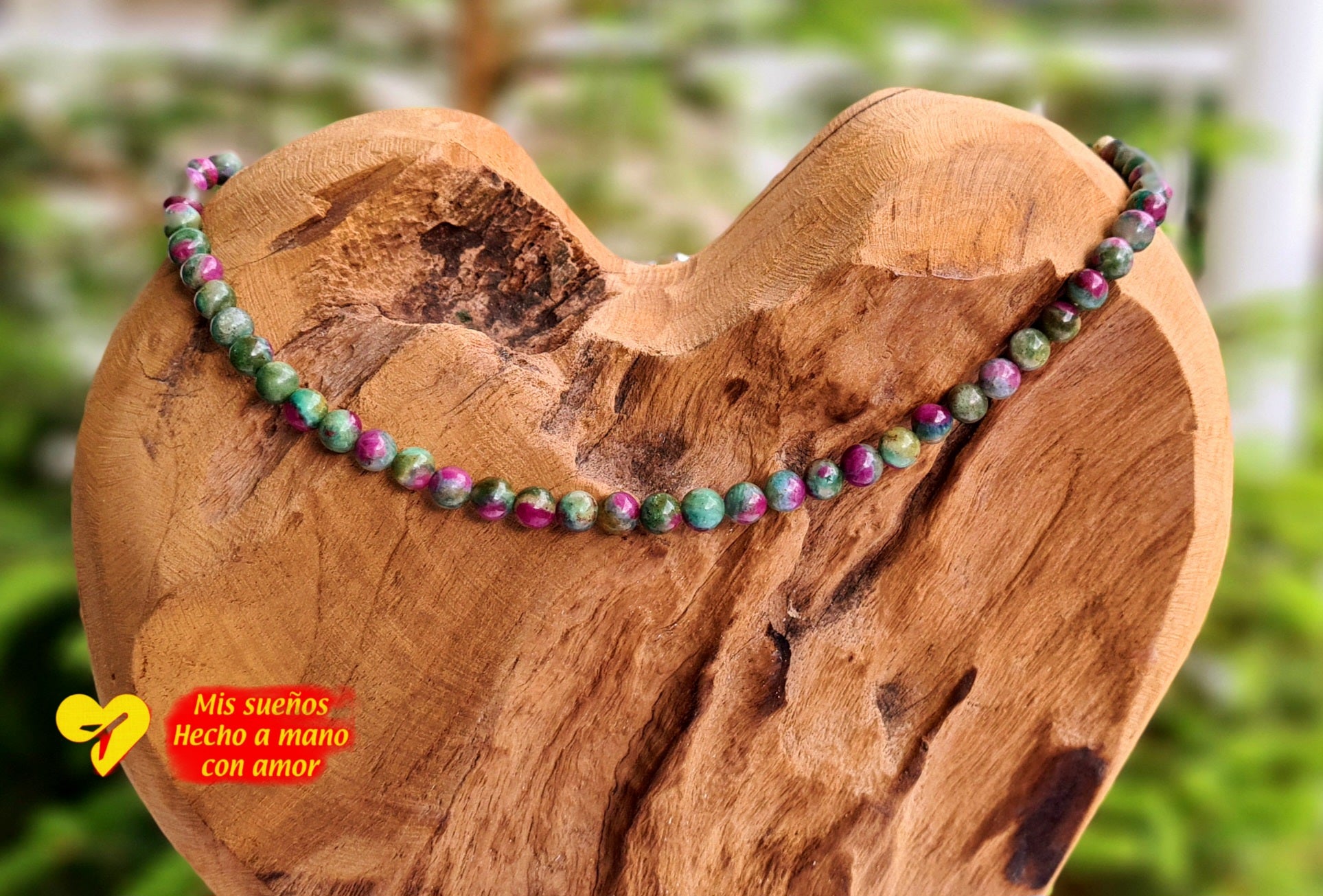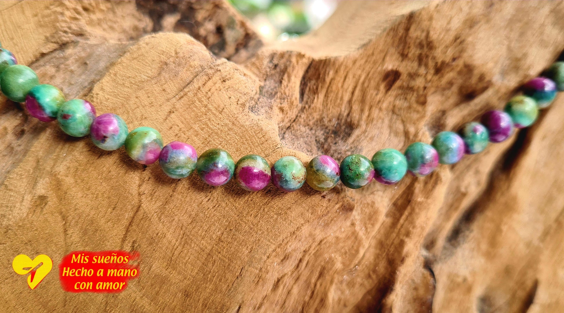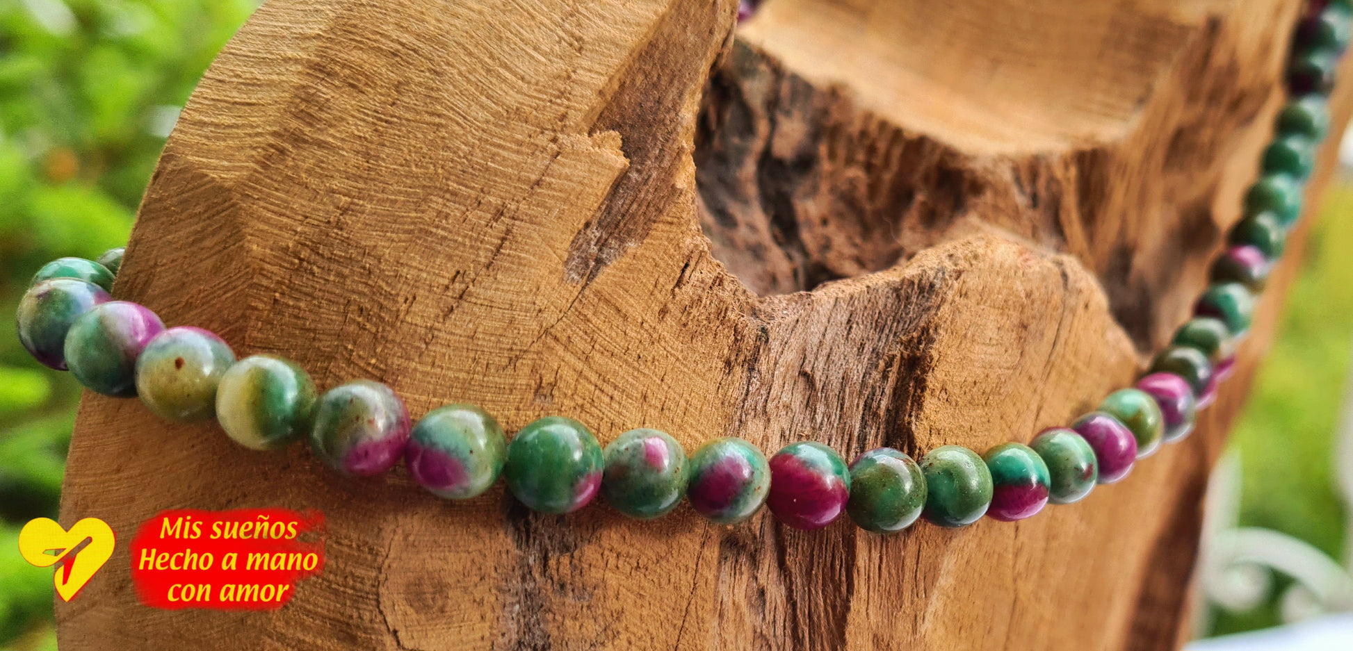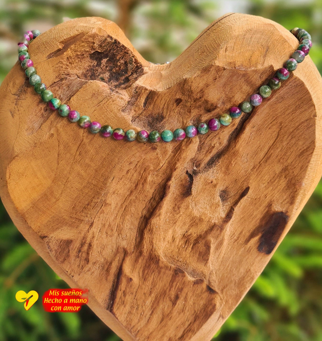 Rundhalskette Fuchsit mit Rubin-Disthen