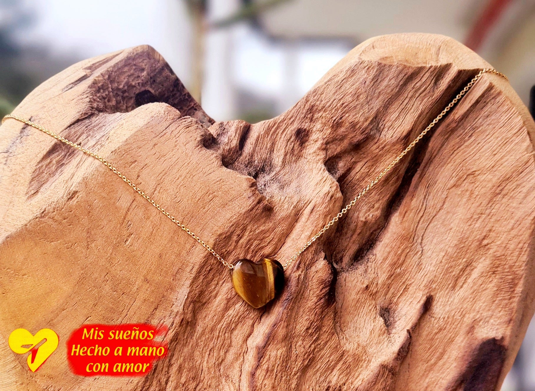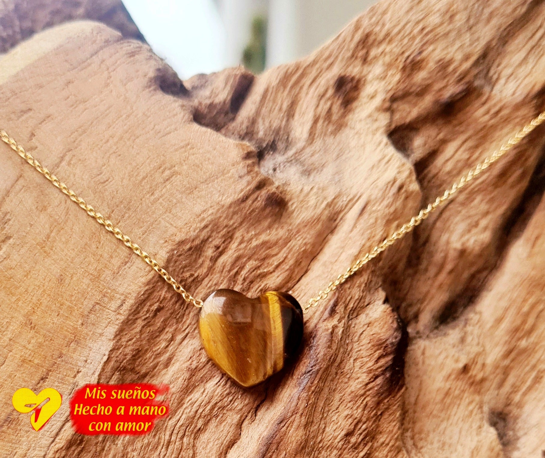 Ein wunderschönes Herz aus Tigerauge, an einer feinen goldenen Kette. Die Kette ist 50cm lang und in der Länge verstellbar. Sie besteht aus 925 Silber und ist mit einer dicken Schicht, 18 Karat vergoldet.